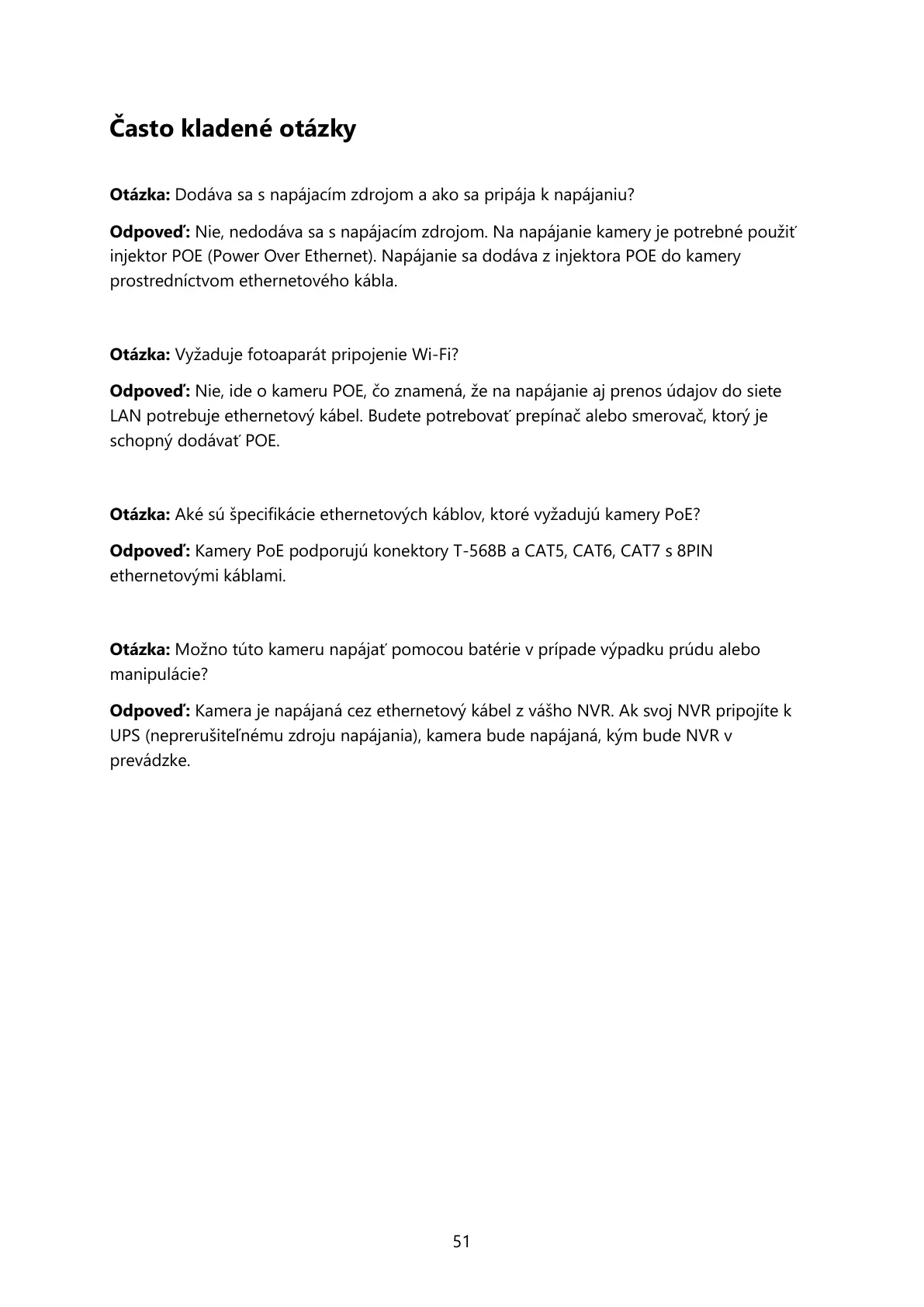 Odpoveď: Kamera je napájaná cez ethernetový kábel z vášho NVR. Ak svoj NVR pripojíte k