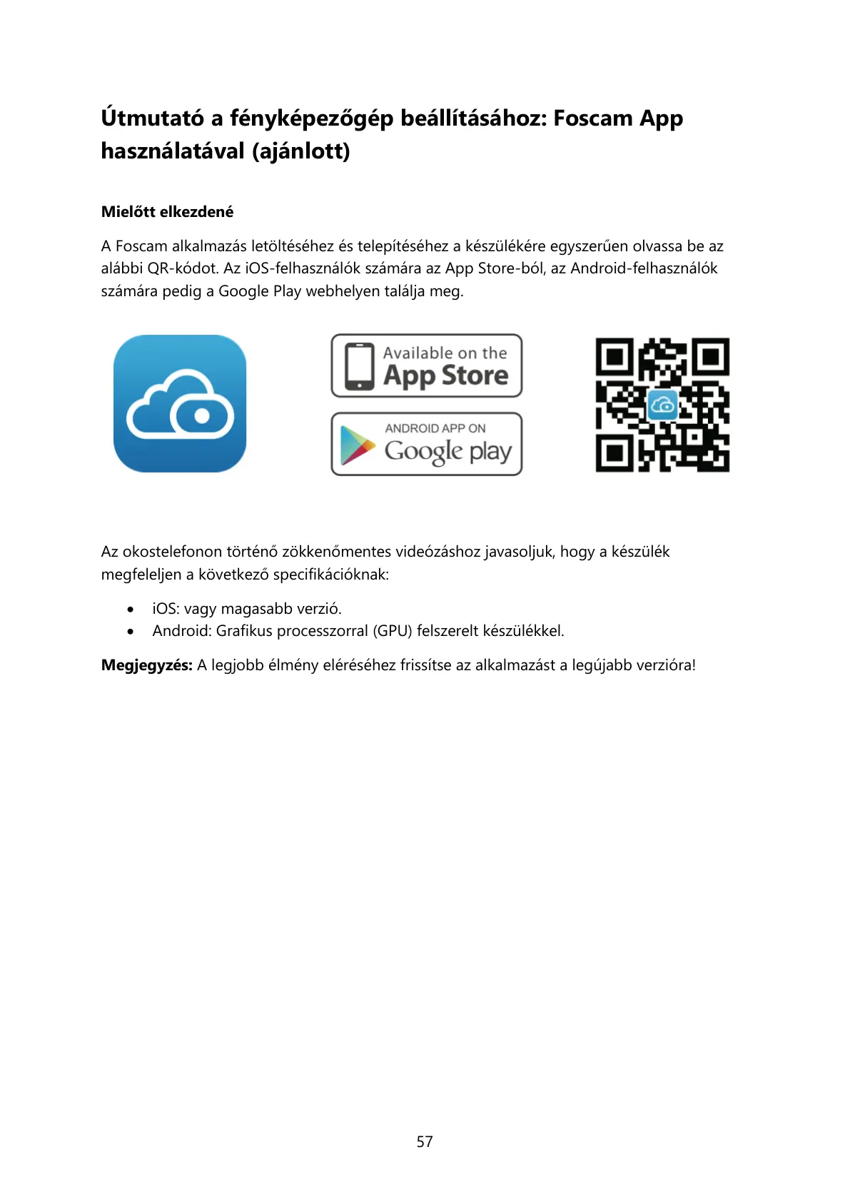 A Foscam alkalmazás letöltéséhez és telepítéséhez a készülékére egyszerűen olvassa be az