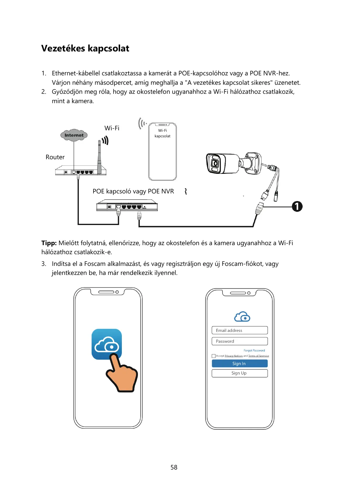 Tipp: Mielőtt folytatná, ellenőrizze, hogy az okostelefon és a kamera ugyanahhoz a Wi-Fi