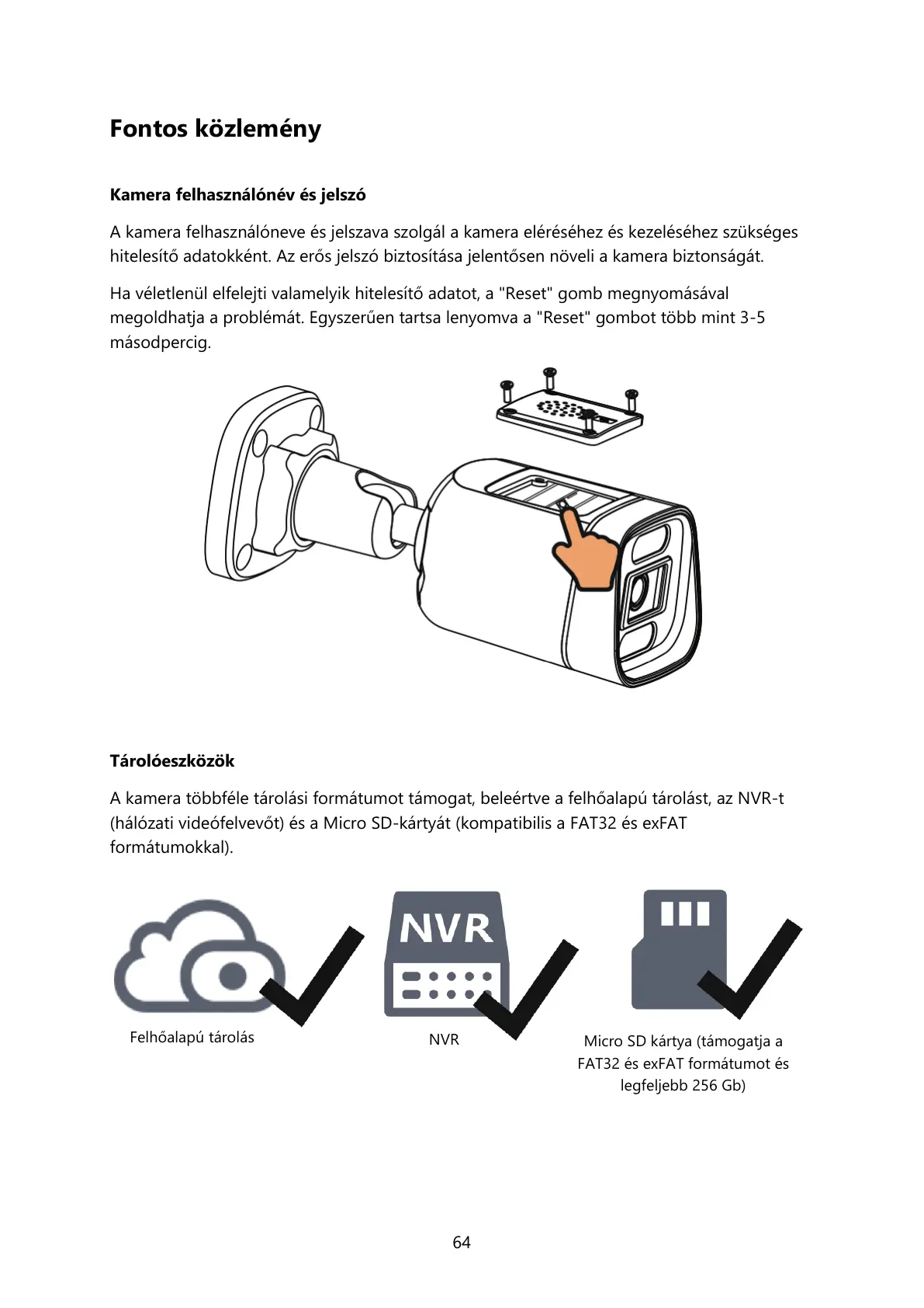 A kamera többféle tárolási formátumot támogat, beleértve a felhőalapú tárolást, az NVR-t