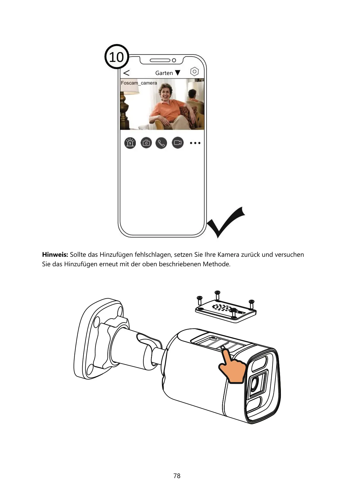 Hinweis: Sollte das Hinzufügen fehlschlagen, setzen Sie Ihre Kamera zurück und versuchen