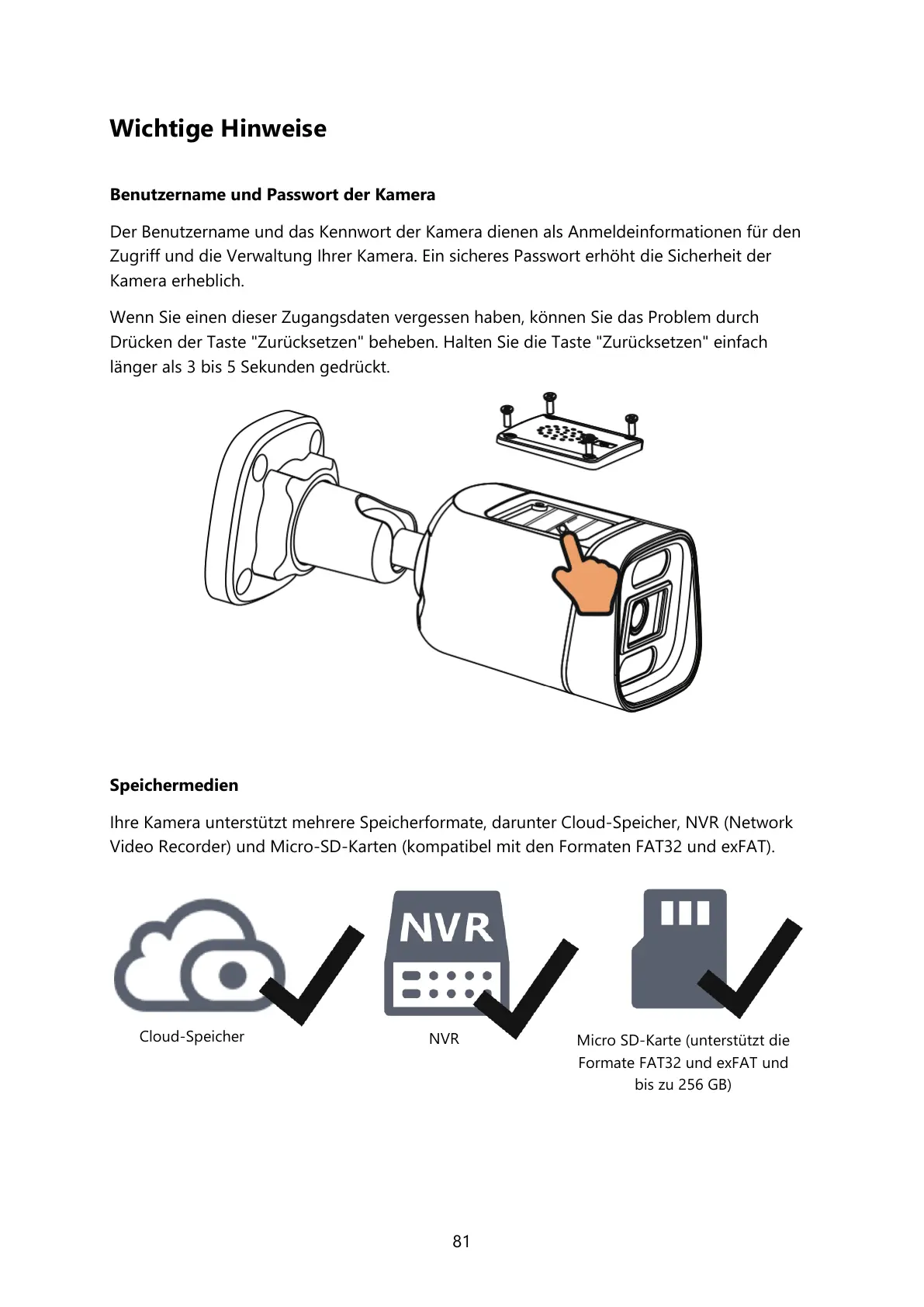 Ihre Kamera unterstützt mehrere Speicherformate, darunter Cloud-Speicher, NVR (Network