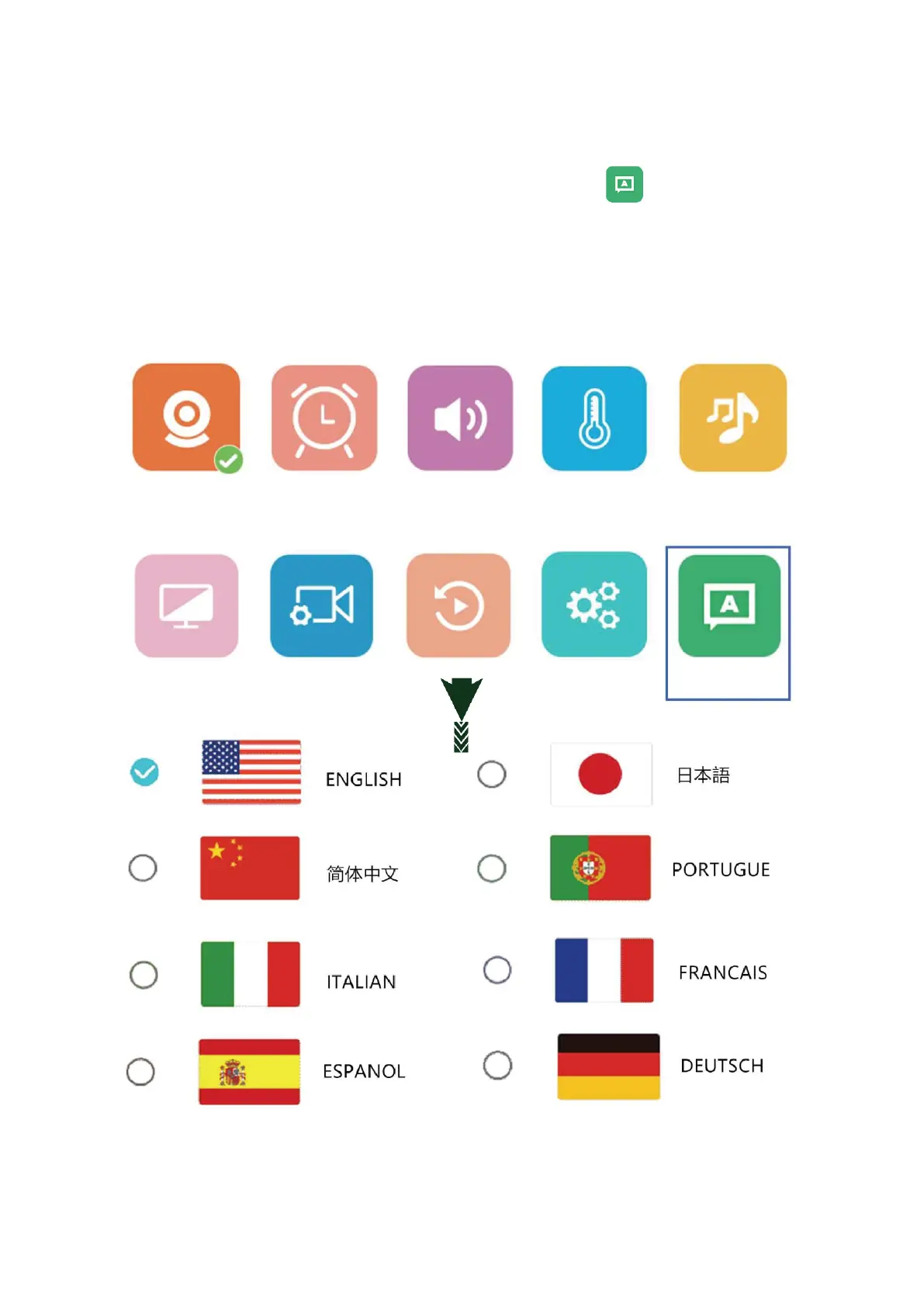 15.1: Lépjen be a főmenübe a Nyelv ikon kiválasztásához, ezután állítsa be a