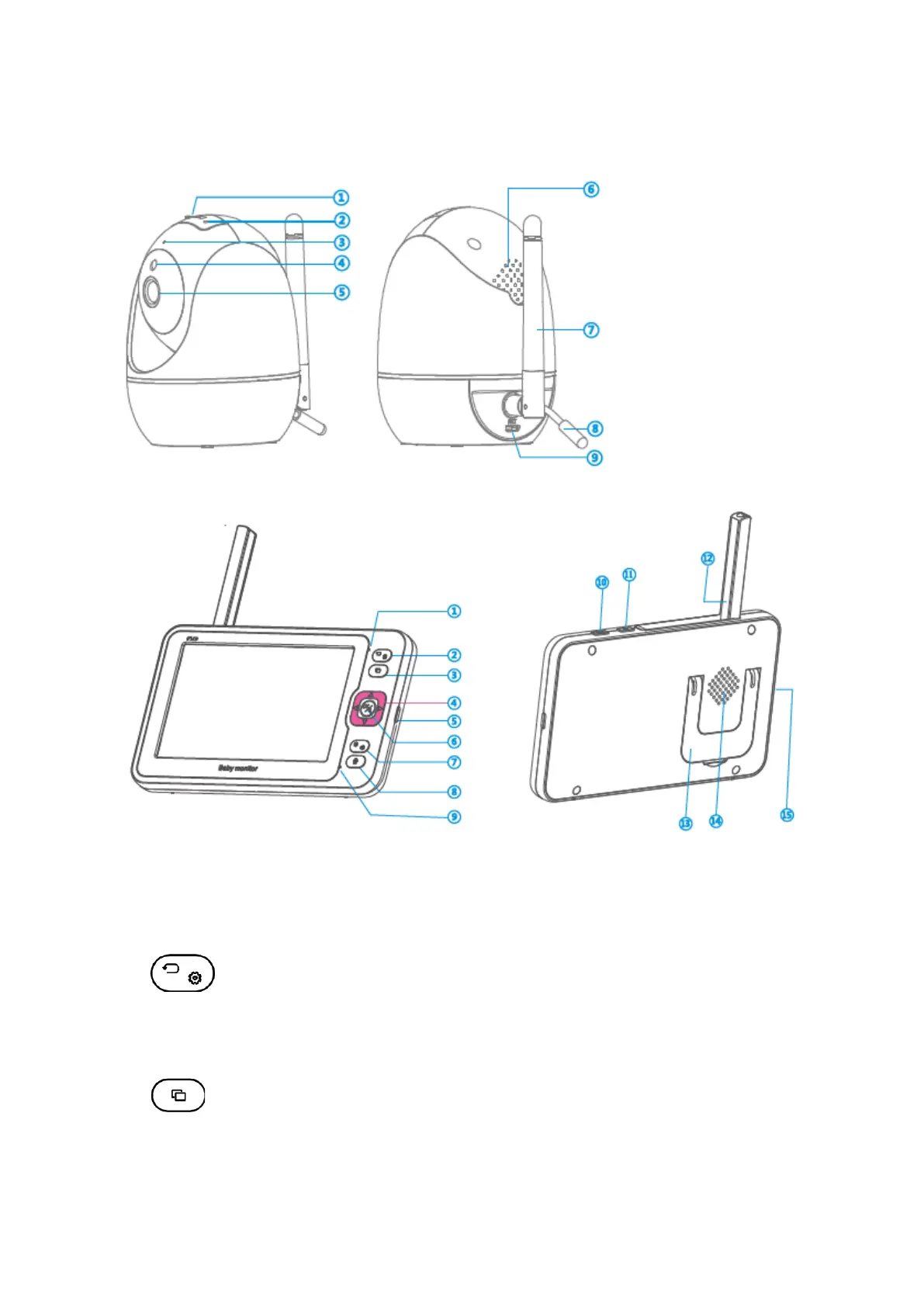 2.2: Zurück-Taste: Drücken Sie im Überwachungsmodus diese Taste, um