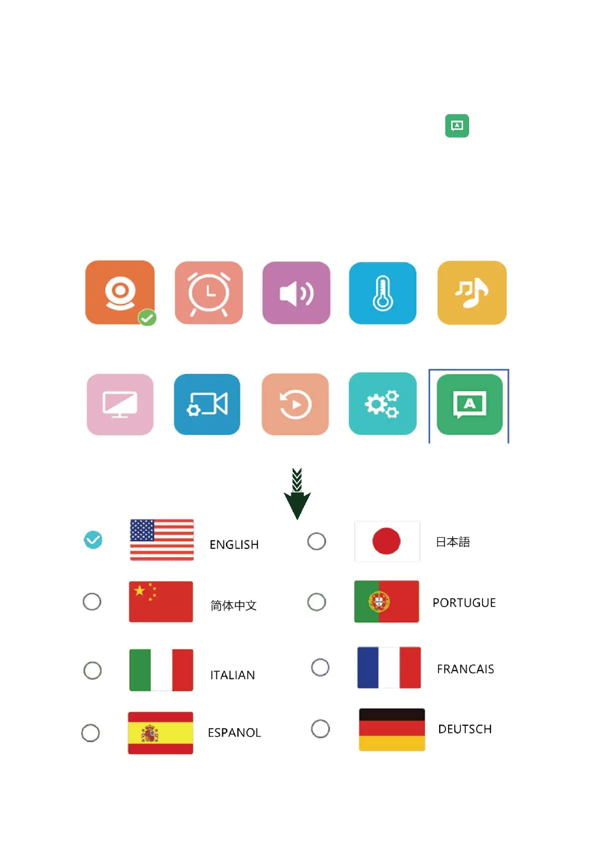15.1: Rufen Sie das Hauptmenü auf und wählen Sie die Funktion: Sprache ( ), wählen