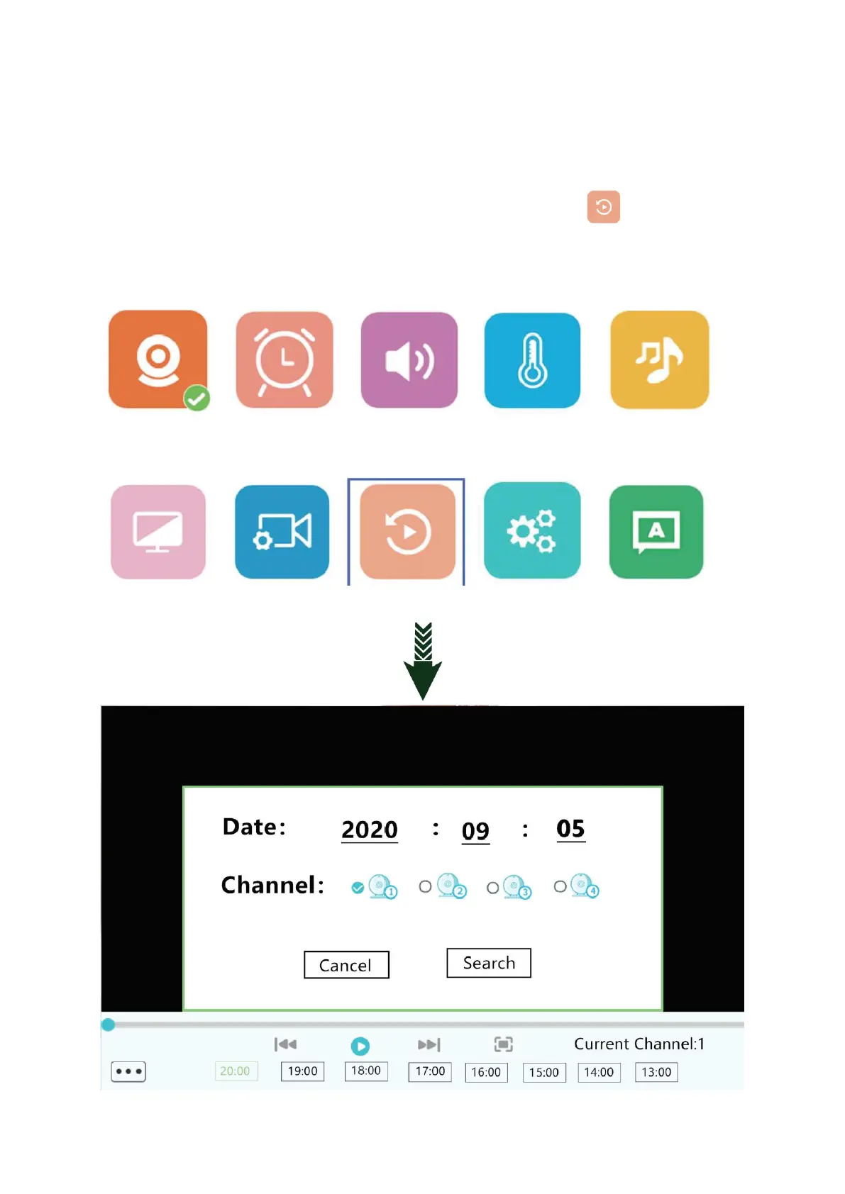 13.1: Vstupte do hlavní nabídky a vyberte funkci: Přehrávání videa( ). Vyhledejte video,