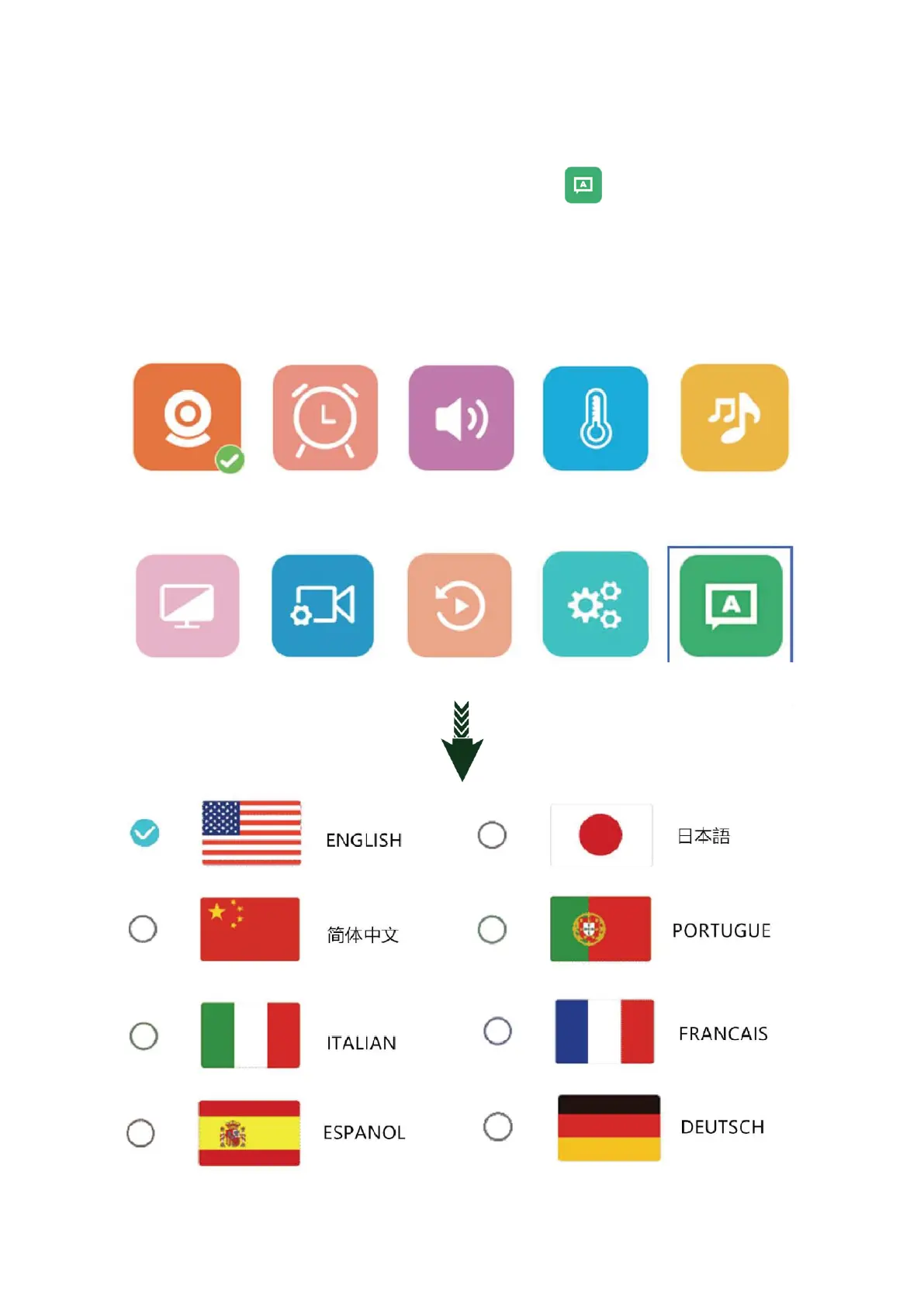 15.1: Vstupte do hlavní nabídky a vyberte funkci: Jazyk ( ), vyberte vámi požadovaný