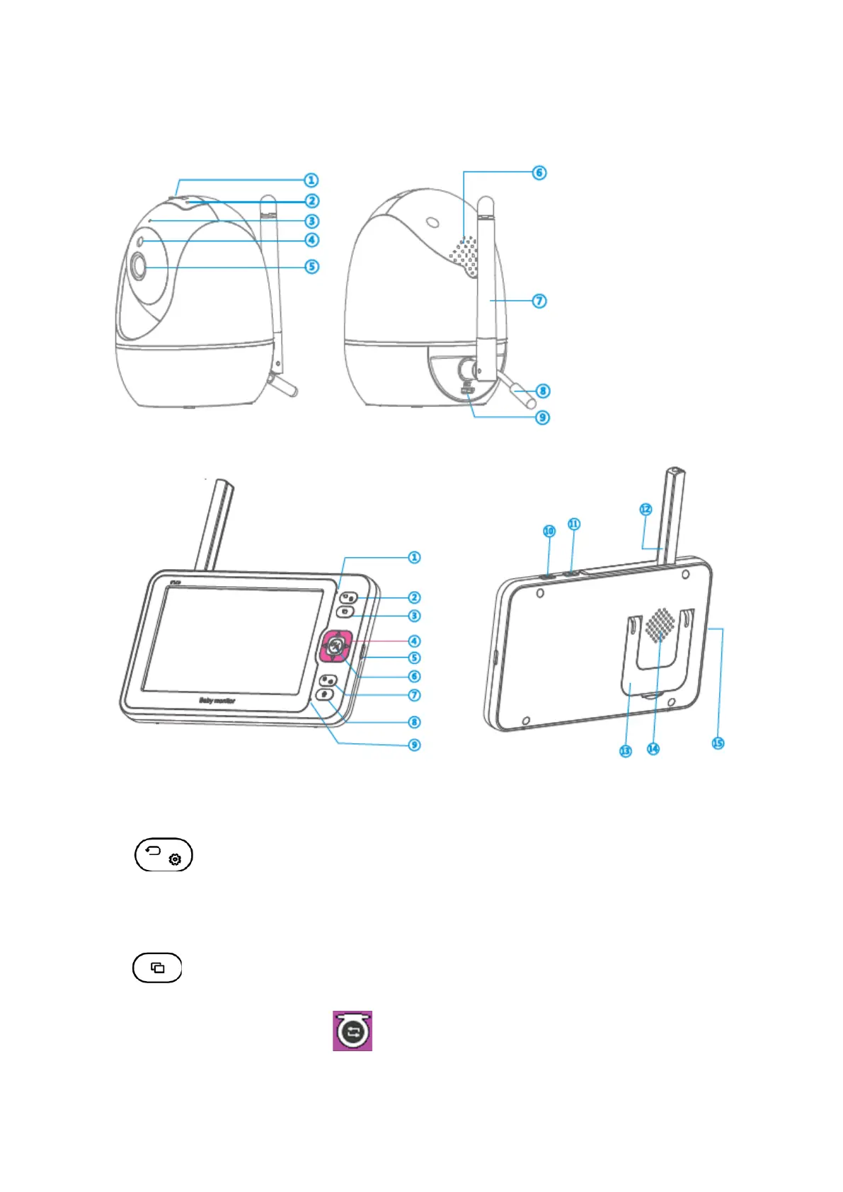 2.2: Tlačidlo späť: V režime monitorovania stlačte toto tlačidlo pre nastavenie