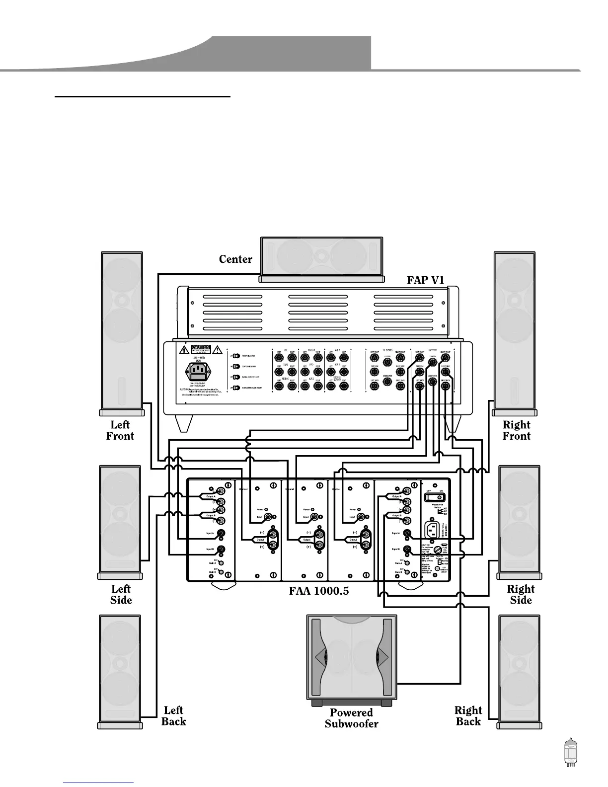 FAA 1000.5 Power Amplifier. The FAP V1 can output up to 7.1 channels of sound (seven satellite and one subwoofer channel)