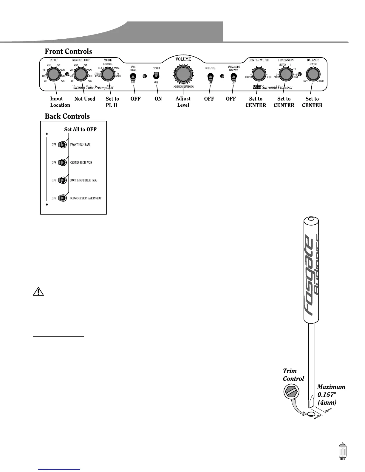 channel adjustment trim control points. There is risk of severe shock.