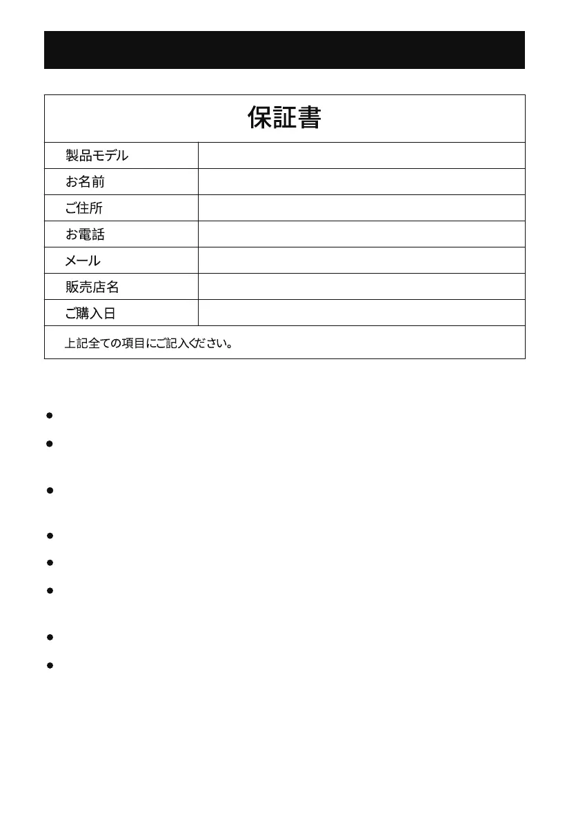 製品の購入後本書とレシートなど購入履歴の分かる物を一緒に保管し、保証を受ける場合弊社のご