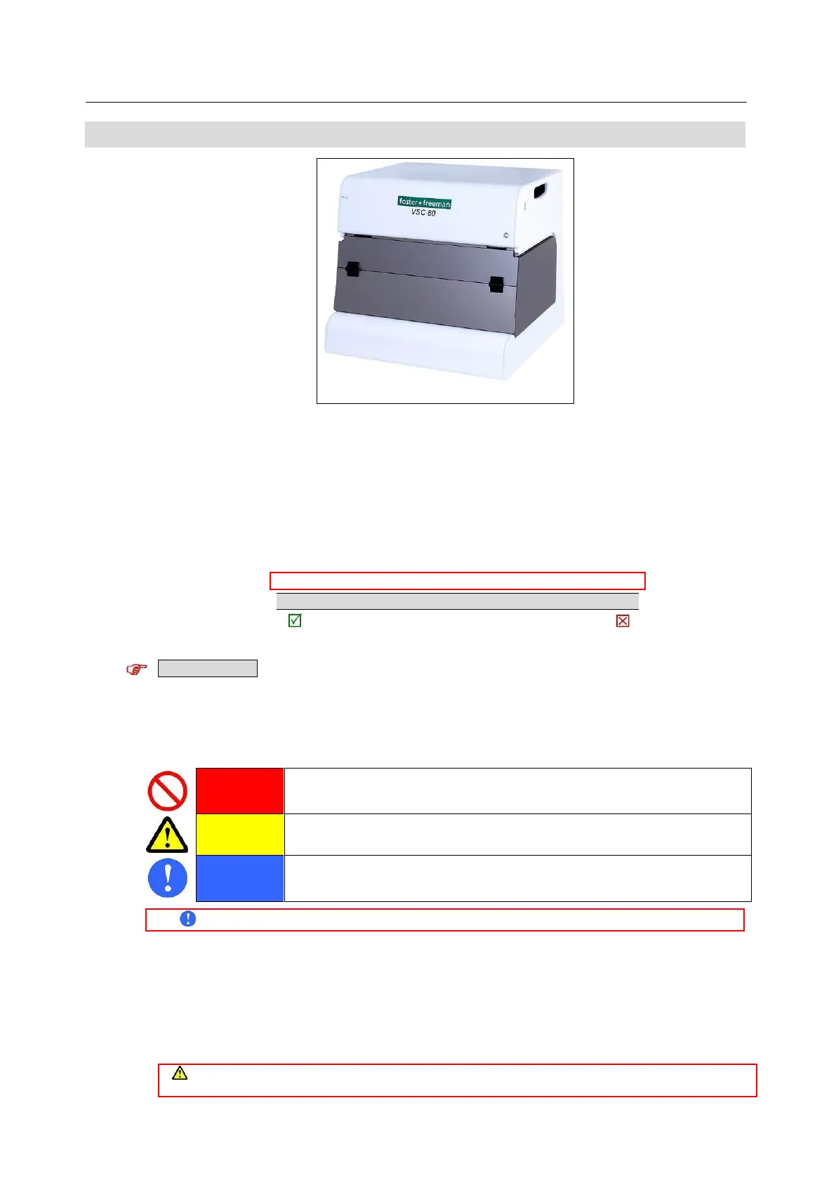 Red markers prohibit certain actions or procedures. Disregard of these warnings may pose