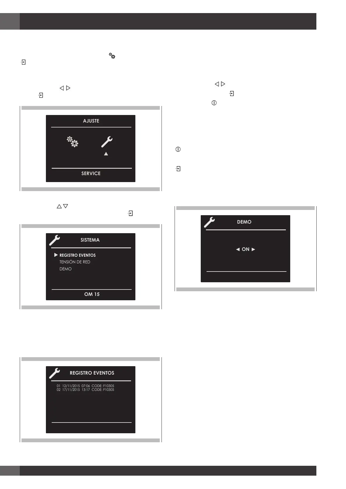 pantalla DEMOy configurar la opción OFF. Confirmar con la tecla