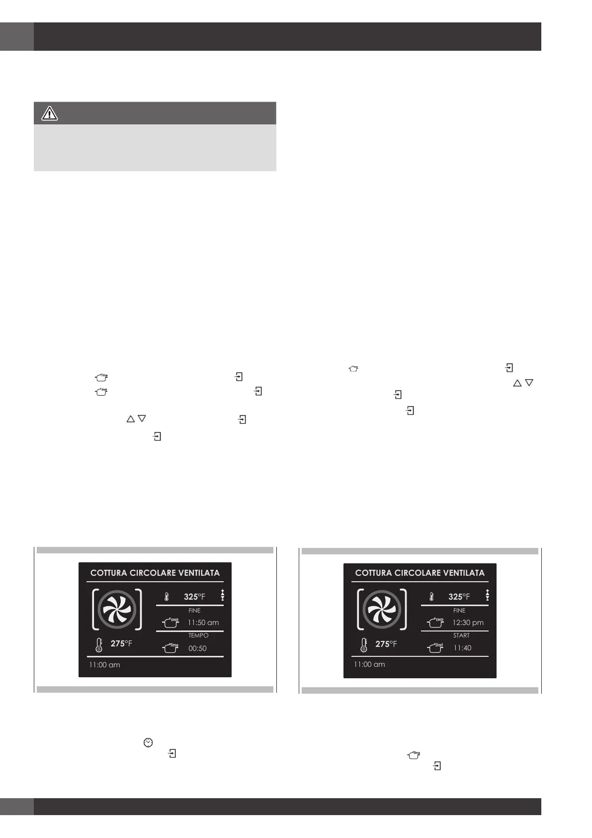 tempo. Inserire l'ora di fine cottura e il forno calcolerà in automatico