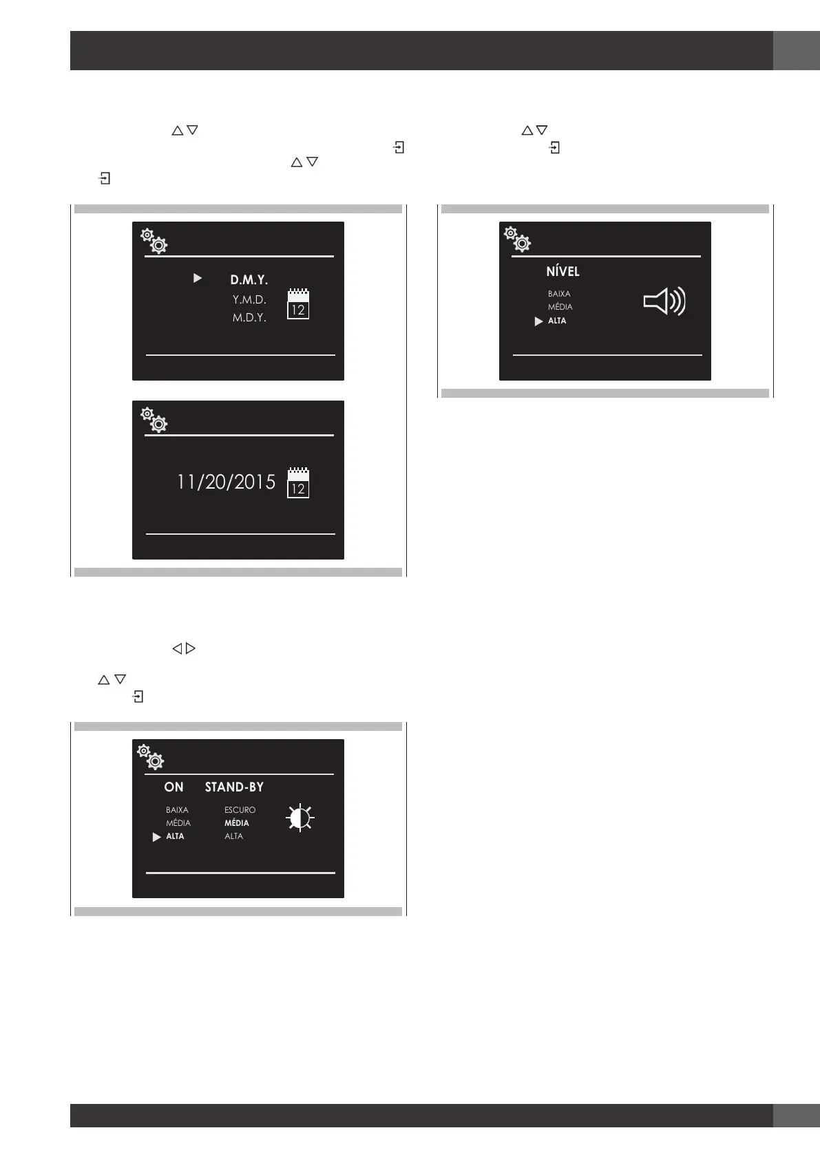 Prima a tecla de seta para selecionar o formato da data de entre