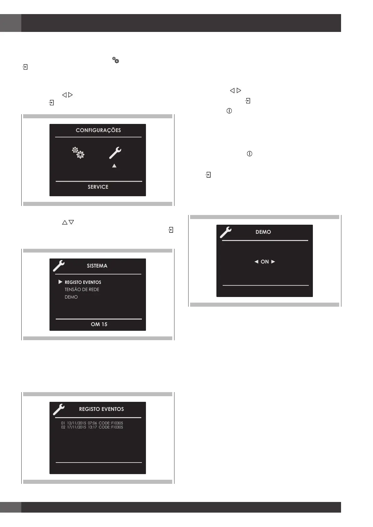 para entrar no menu DEFINIÇÕES. Este menu permite definir um