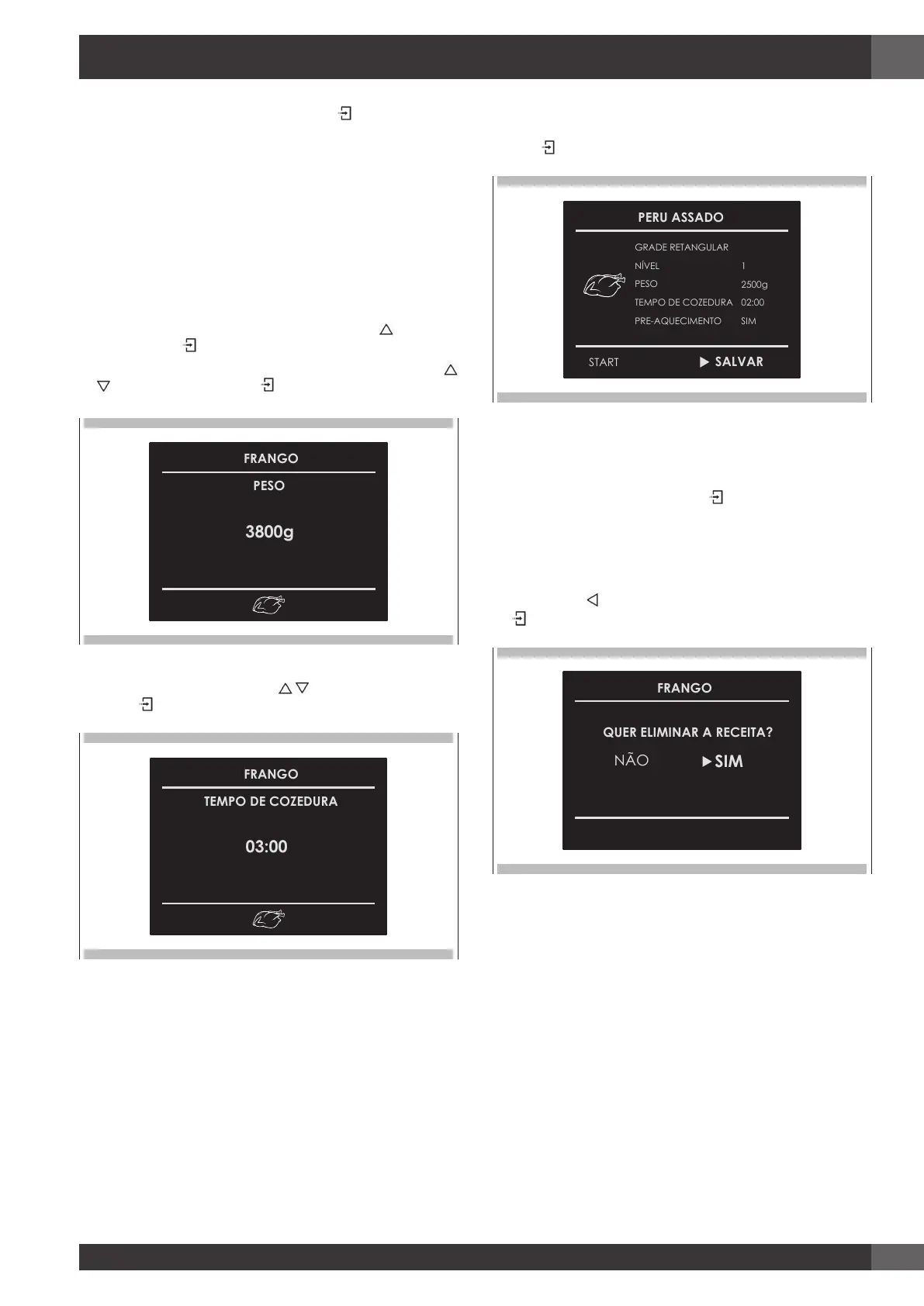 1. Uma vez selecionada uma receita, prima a tecla