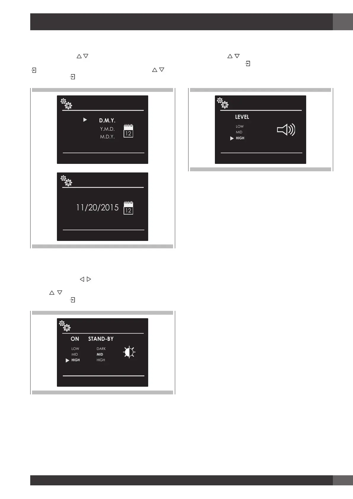 Press the arrow key to select the date format from among