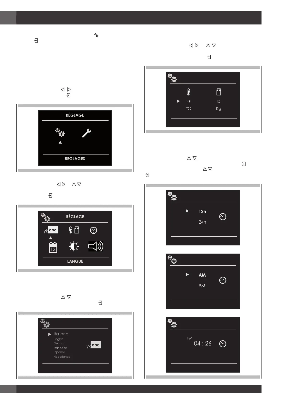 Enfoncer la touche flèche pour sélectionner le format de l'heure