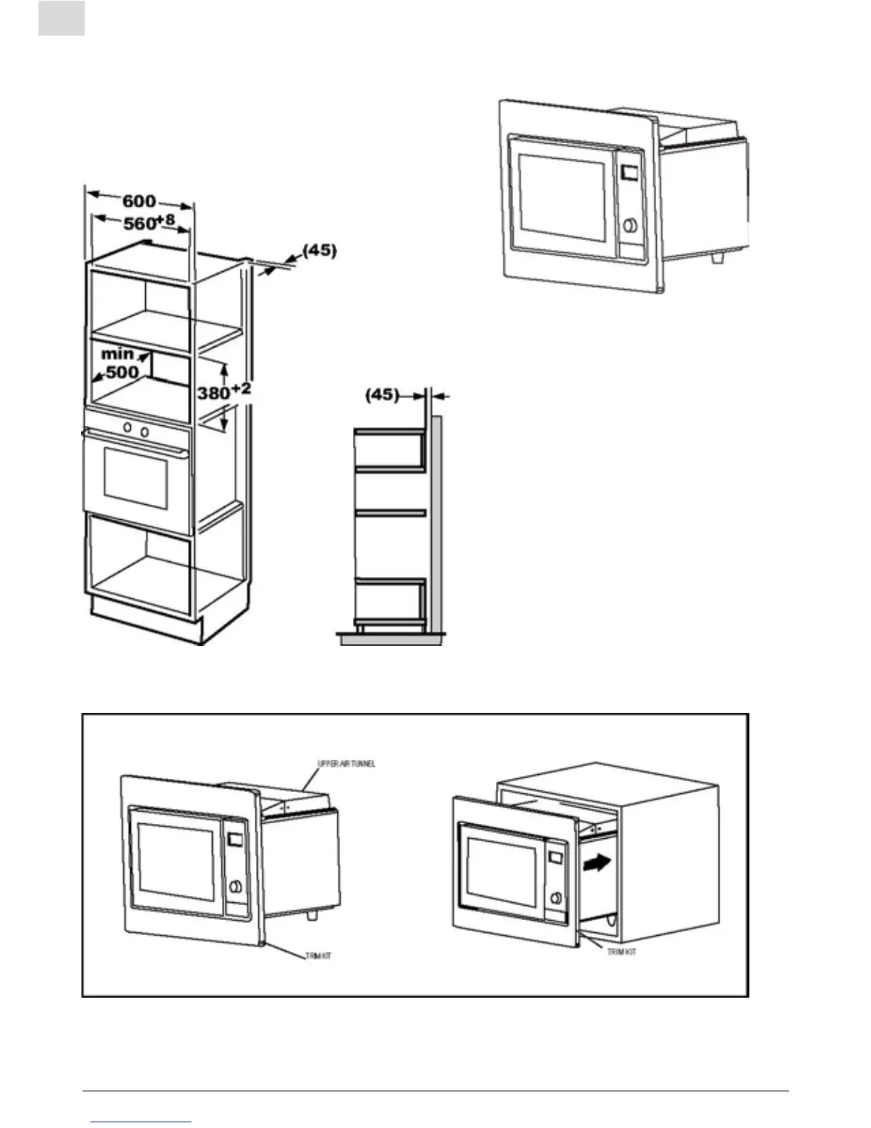 The built-in cabinet shall not have a rear wall behind the appliance. Minimum installation height is 85cm. Do