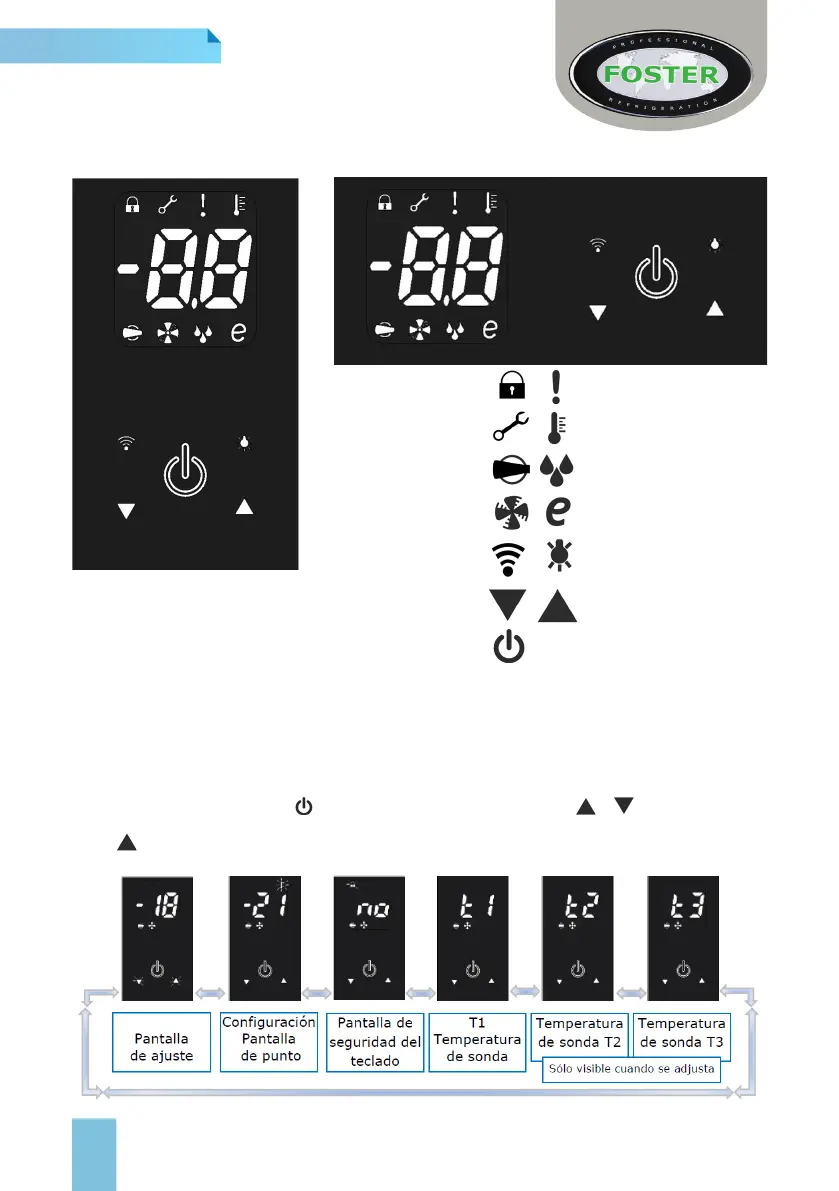 Estos incluyen punto de ajuste, seguridad del teclado, y visualización de temperaturas de sonda