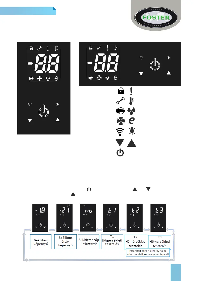 Ezek körébe tartoznak a „setpoint” beállítási gomb, a billentyűzár (Keypad security) gomb és a T1,