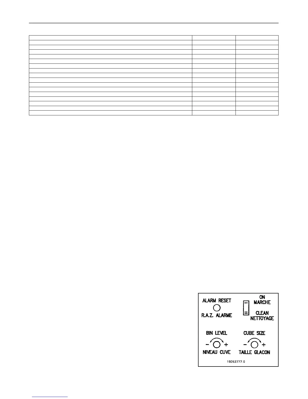 NOTE The RANGE OF THE ICE LEVEL CONTROL SENSOR can be adjusted as shown on table D of PRINCIPLE OF OPERATION; its cut