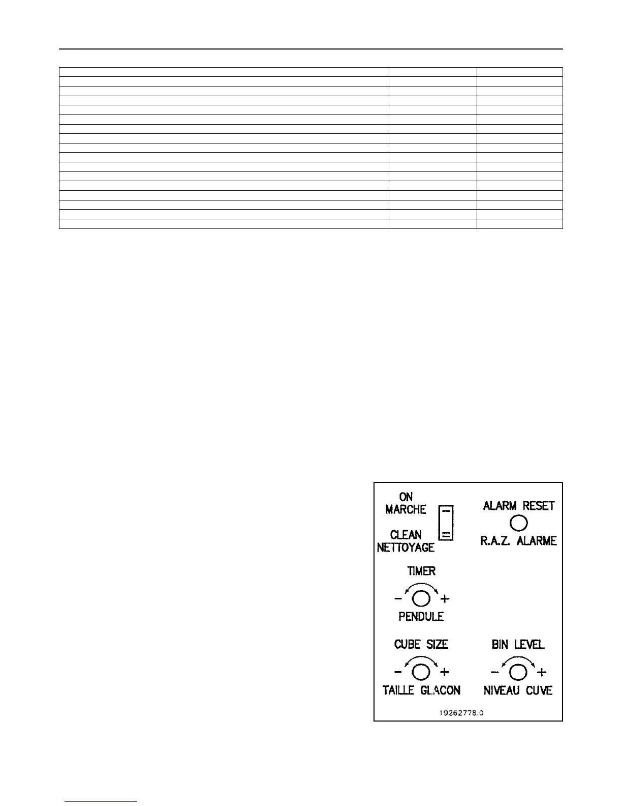 Note. The bin thermostat is factory set at 1°C (35°F) CUT OUT and 4°C (39°F)