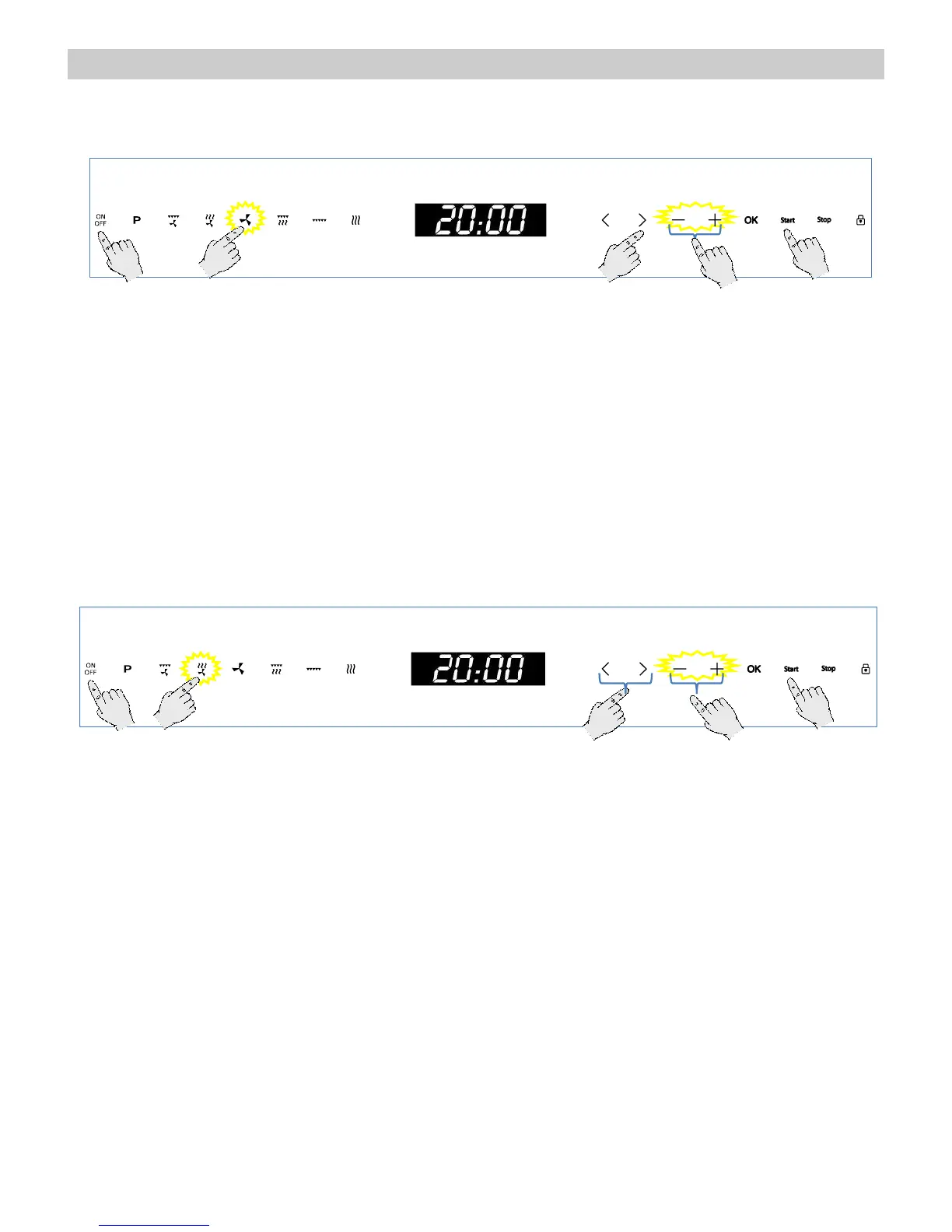 1. Press the “On/Off” key to switch the oven on.