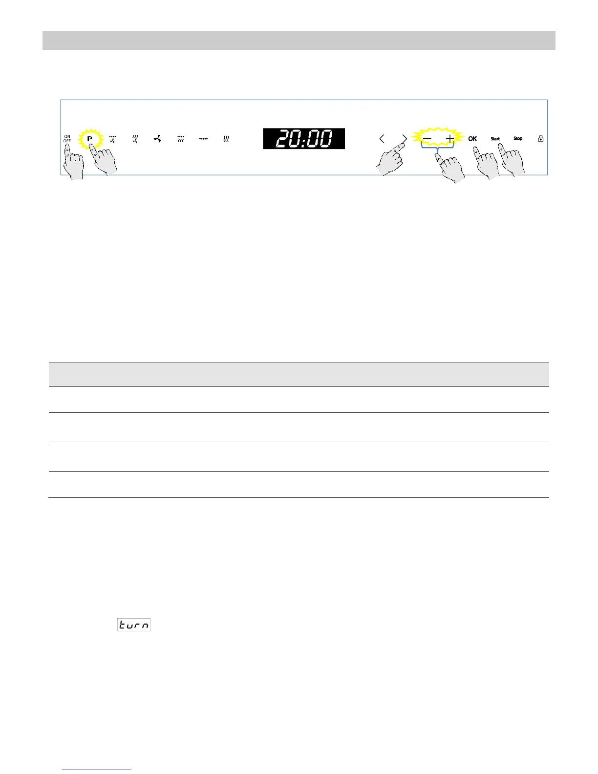 1. Press the “On/Off” key to switch the oven on.