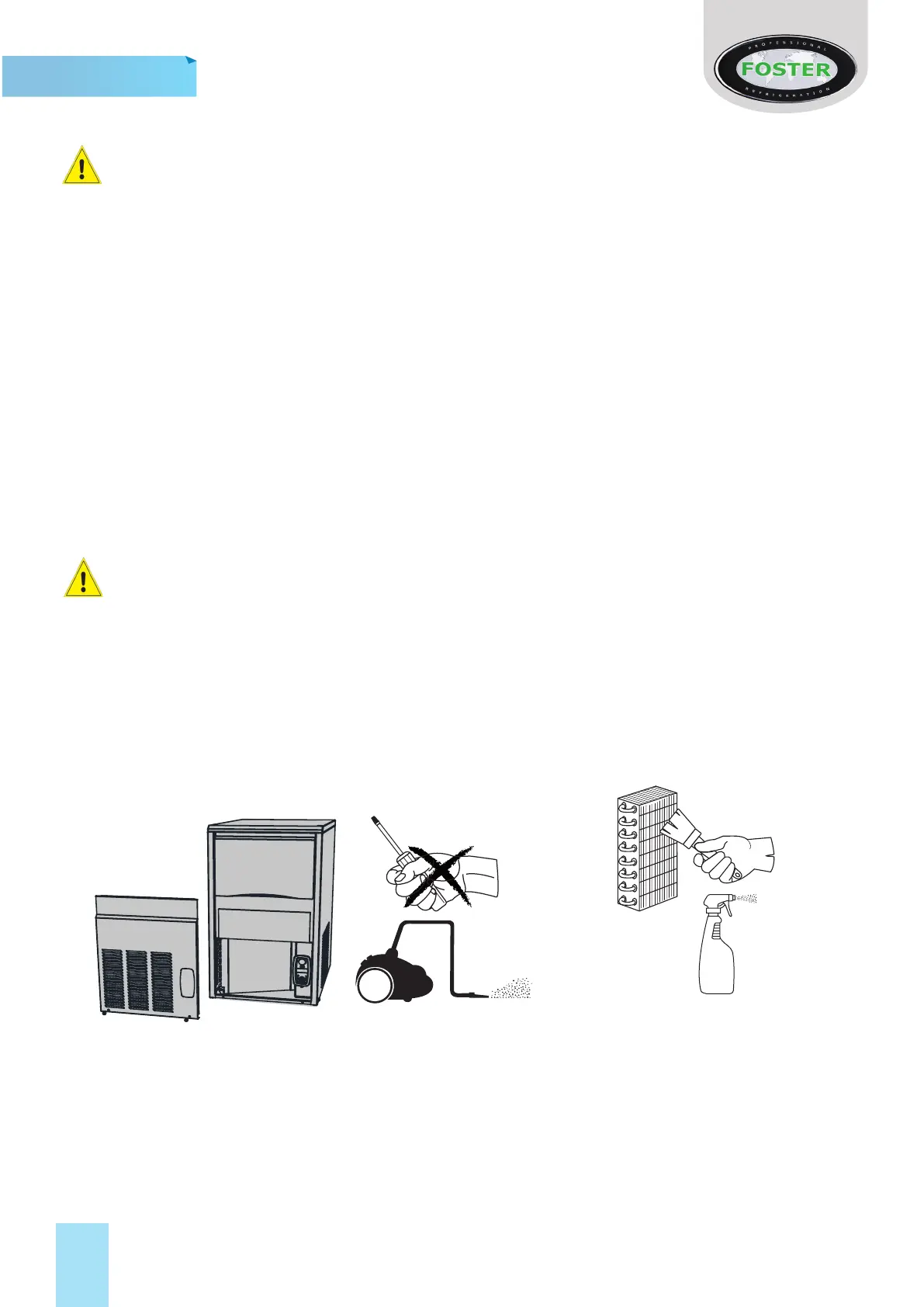 To maximise the eciency and life of you machine, the condenser at the front of the machine must cleaned