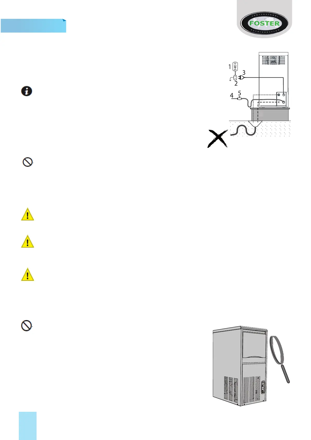 When connecng the machine, ensure hands are dry and the socket is switched o
