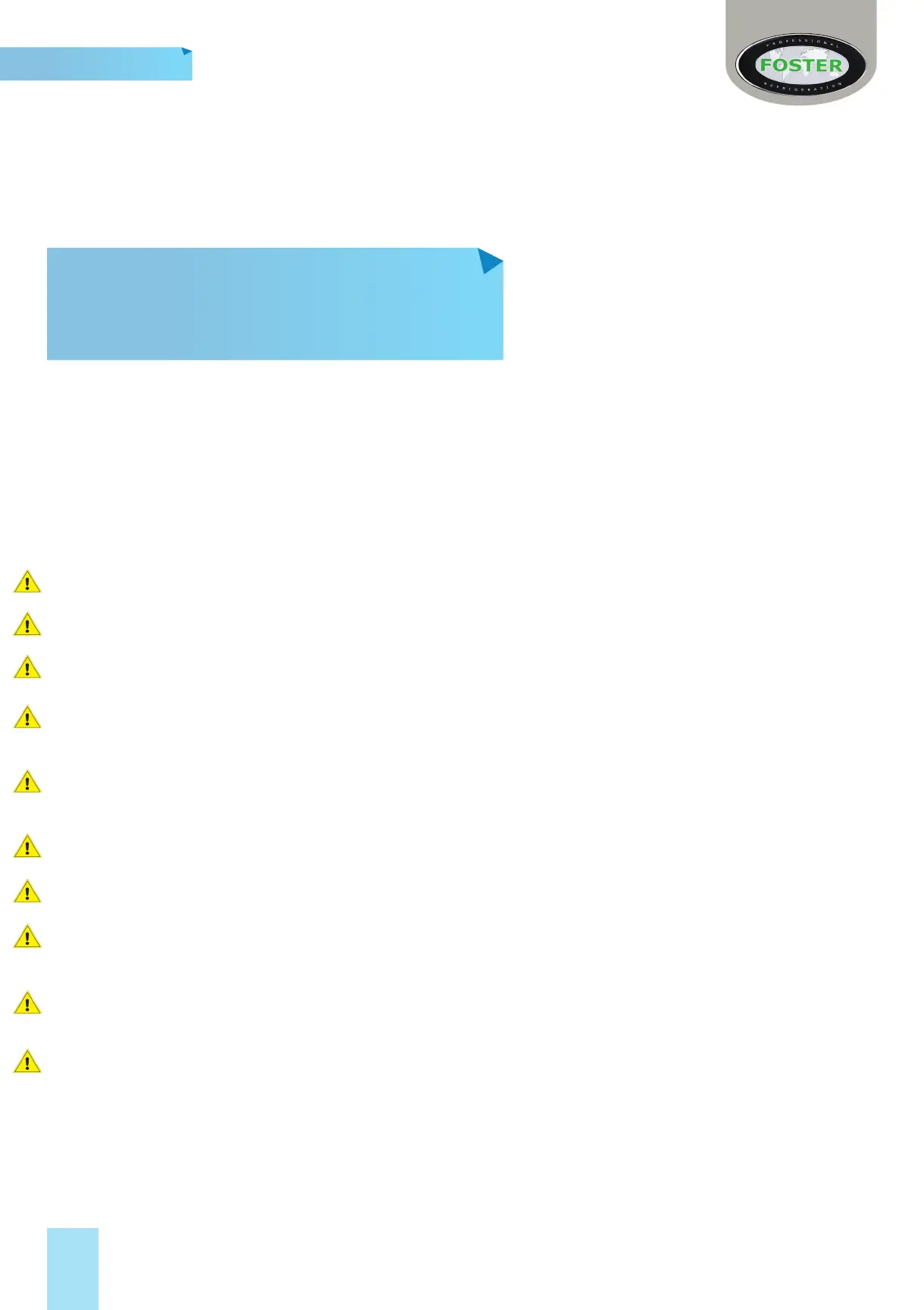 Foster Refrigerator recommends that the equipment is electrically connected via a Residual Current Device;