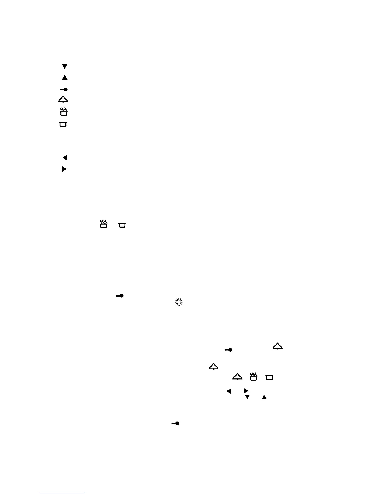 To set the minute minder, switch on the oven by pressing and releasing the key, then press the key:
