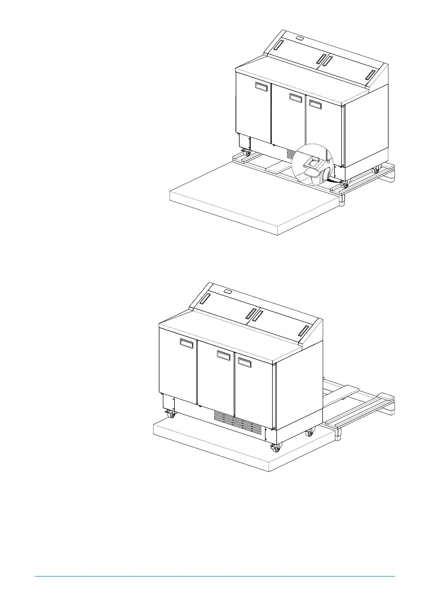 6 If the appliance is not being moved straight to its nal location lock the castors once more.