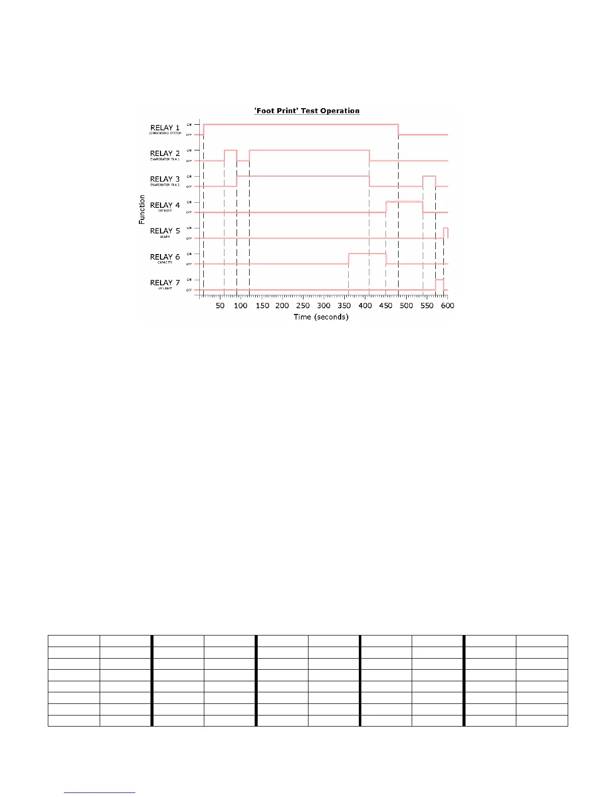 • Relay 7 is energised after 570 seconds from start of test for 20 seconds (de-energises 590 seconds from start).