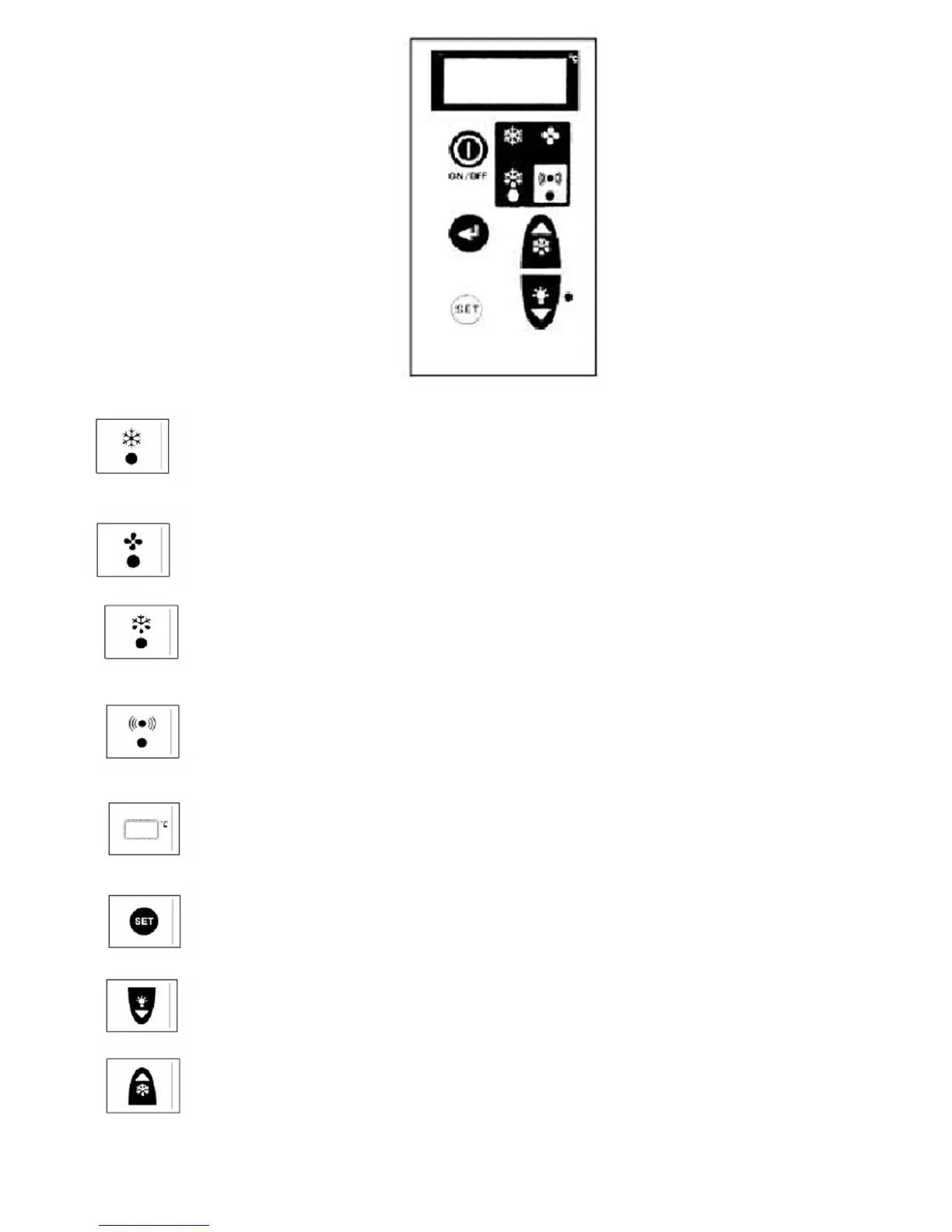 8. MANUAL DEFROST/UP key: In programming mode or when settings room temperature it is