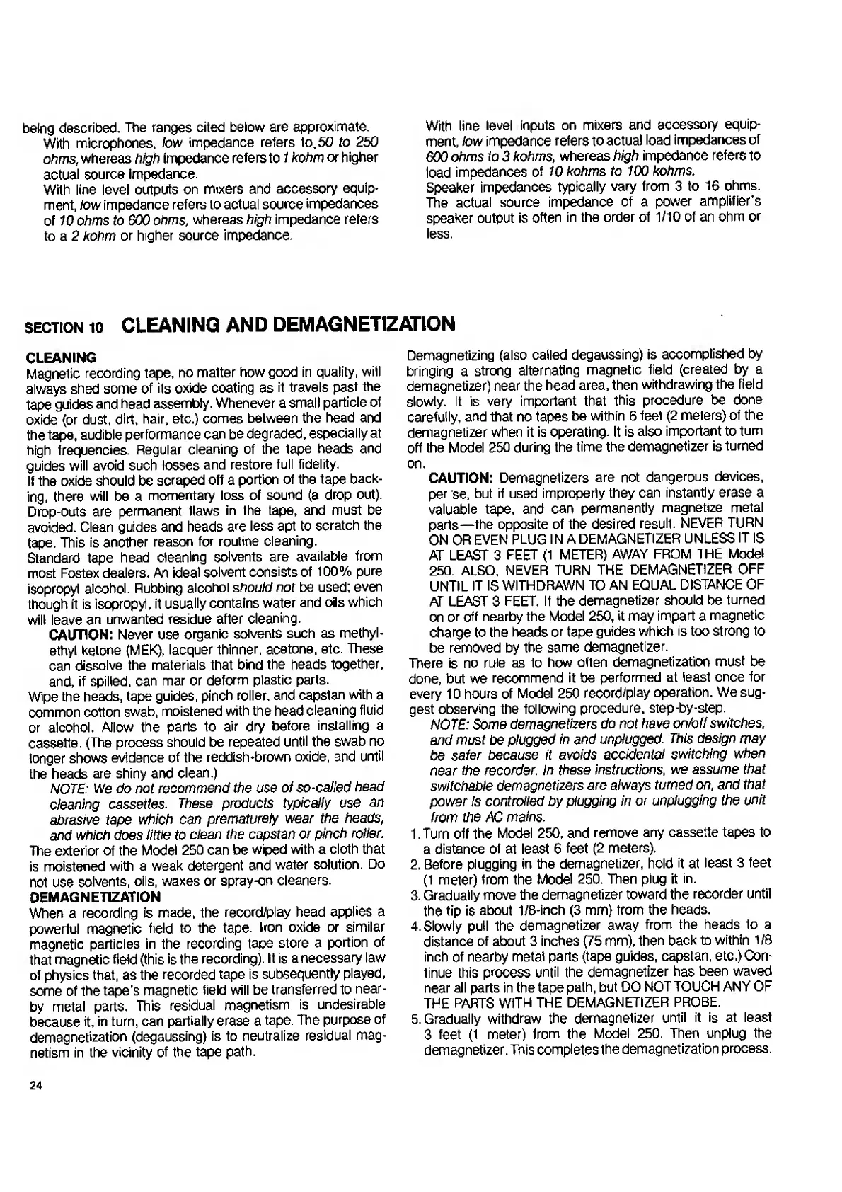Fostex 250 - Cleaning and Demagnetization; Cleaning Procedure; Demagnetization Process