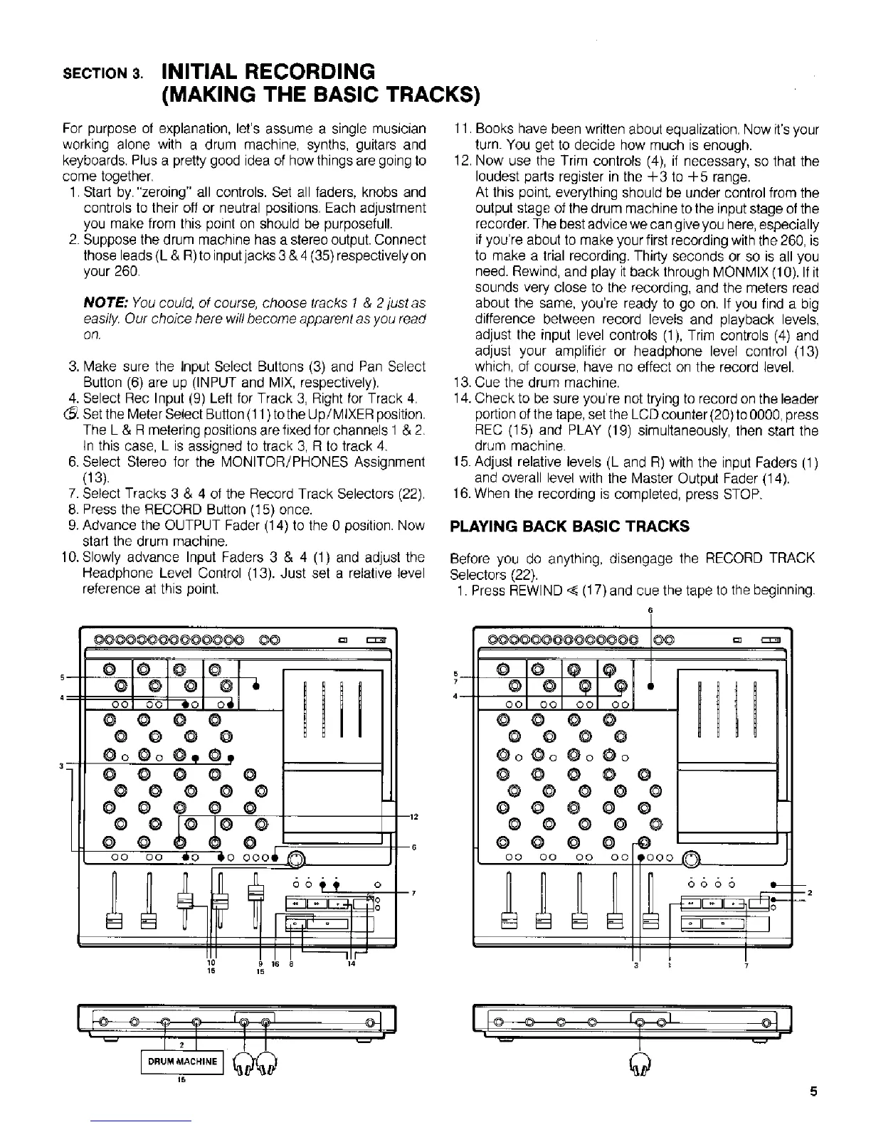 Fostex 260 - Section 3. Initial Recording (Making the Basic Tracks); Basic Track Recording Procedure; Playing Back Basic Tracks