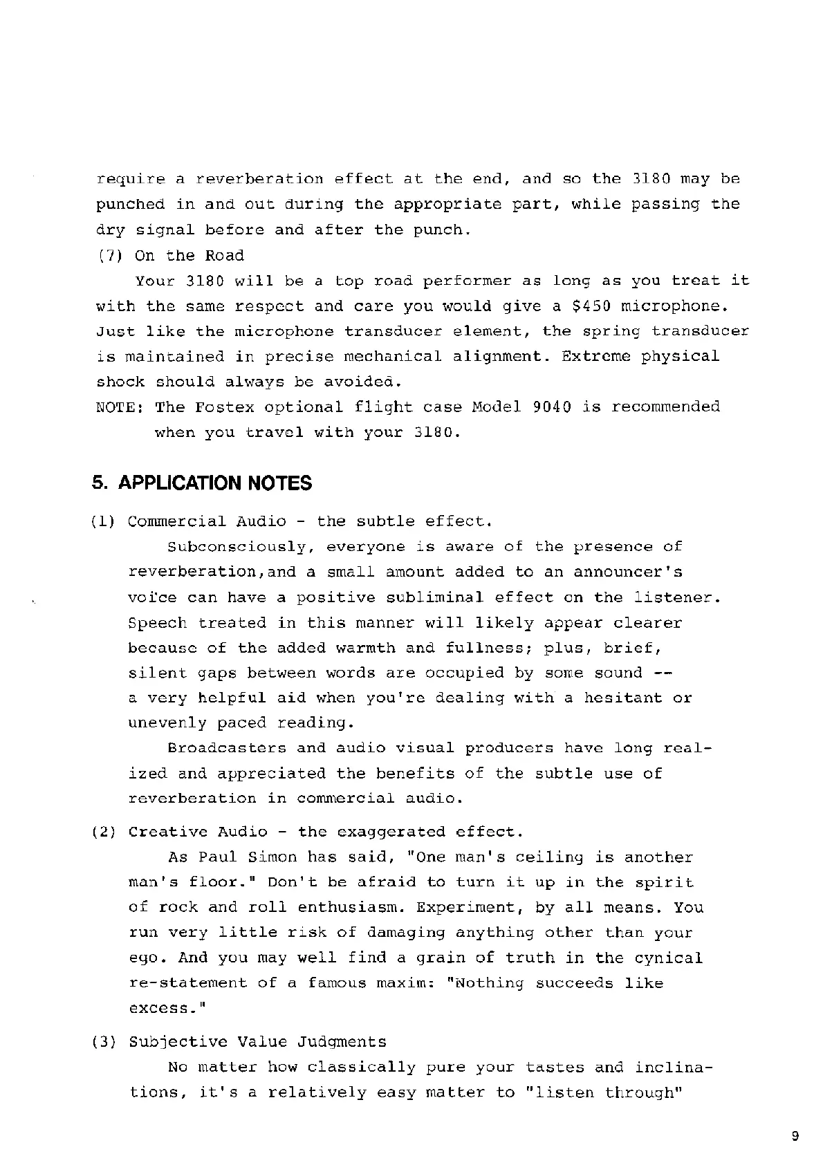 Fostex 3180 - APPLICATION NOTES; Reverb Use Cases