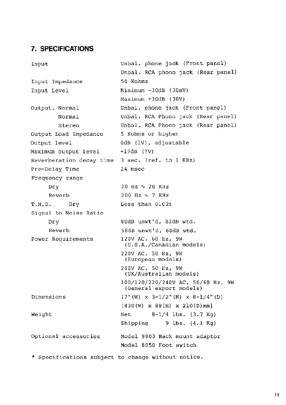 Fostex 3180 - SPECIFICATIONS; Technical Performance Details; Physical and Accessory Data