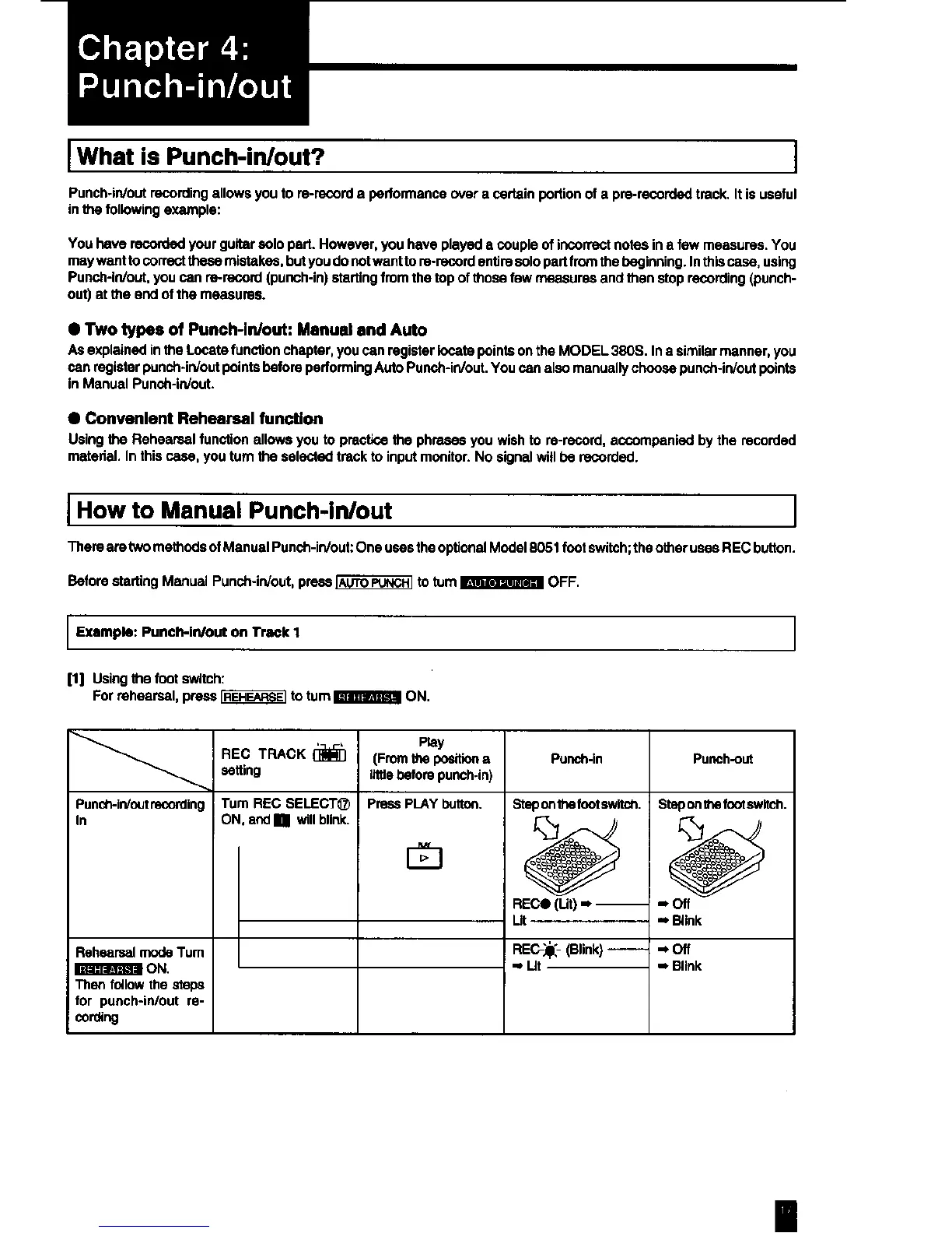 Fostex 380S - Chapter 4: Punch-in;out Recording; What is Punch-in;out?; Manual Punch-in;out Methods