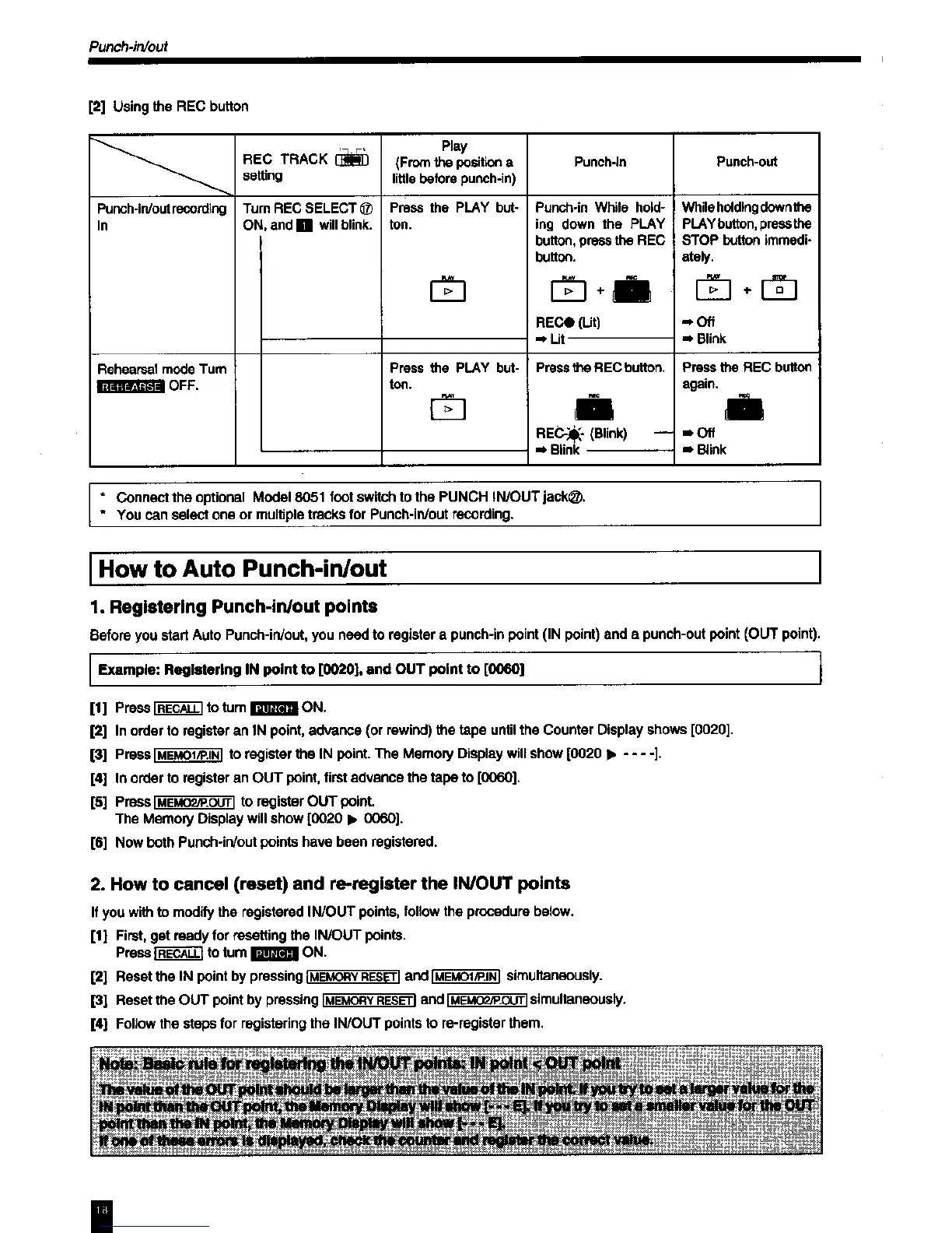Fostex 380S - Auto Punch-in;out Operation; Registering Punch-in;out Points; Cancelling and Re-registering Points