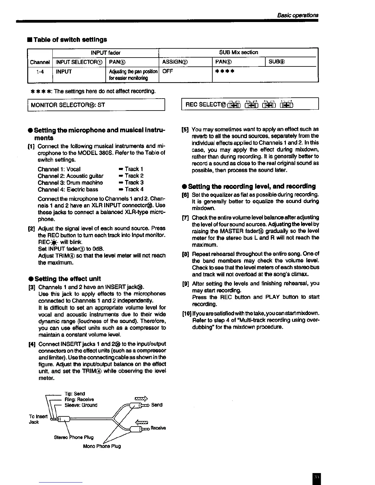 Fostex 380S - Four-Channel Recording Setup; Connecting Instruments and Microphones; Setting Up Effect Units; Setting Levels and Recording
