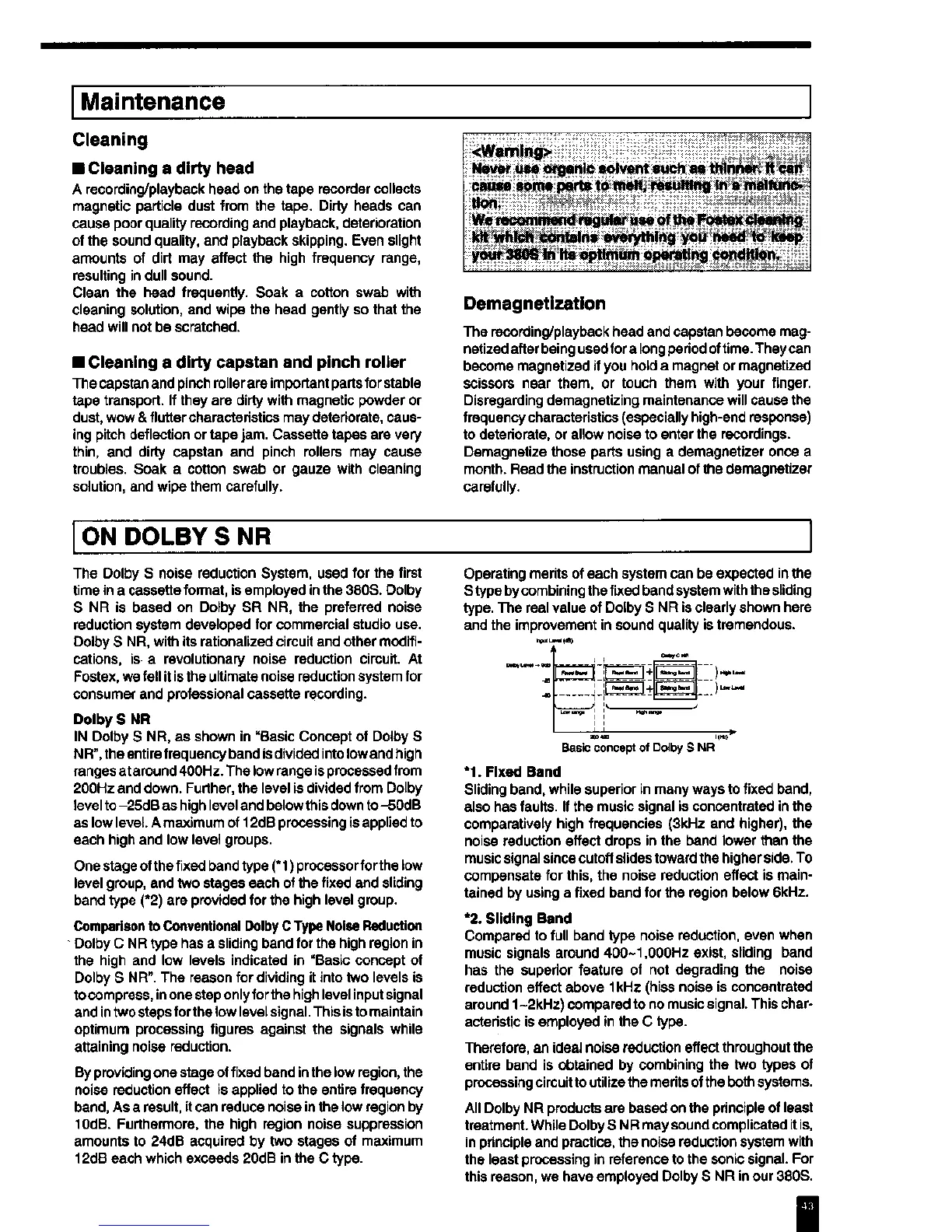 Fostex 380S - Maintenance and Noise Reduction; Cleaning Heads and Rollers; Demagnetization Procedure; Dolby S Noise Reduction System