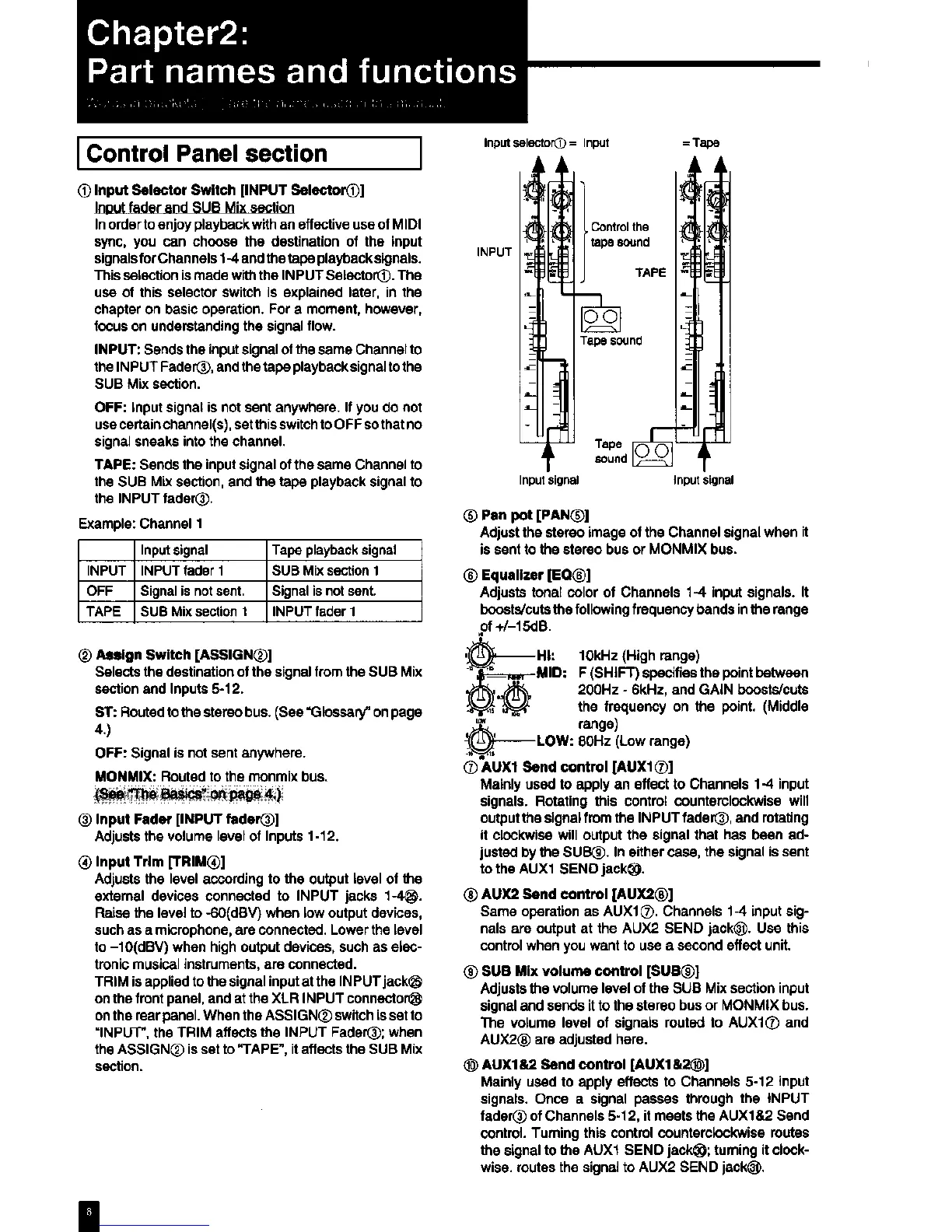 Fostex 380S - Control Panel Functions; Input Selector Switch; Assign Switch Function; Pan Pot (PAN) Control
