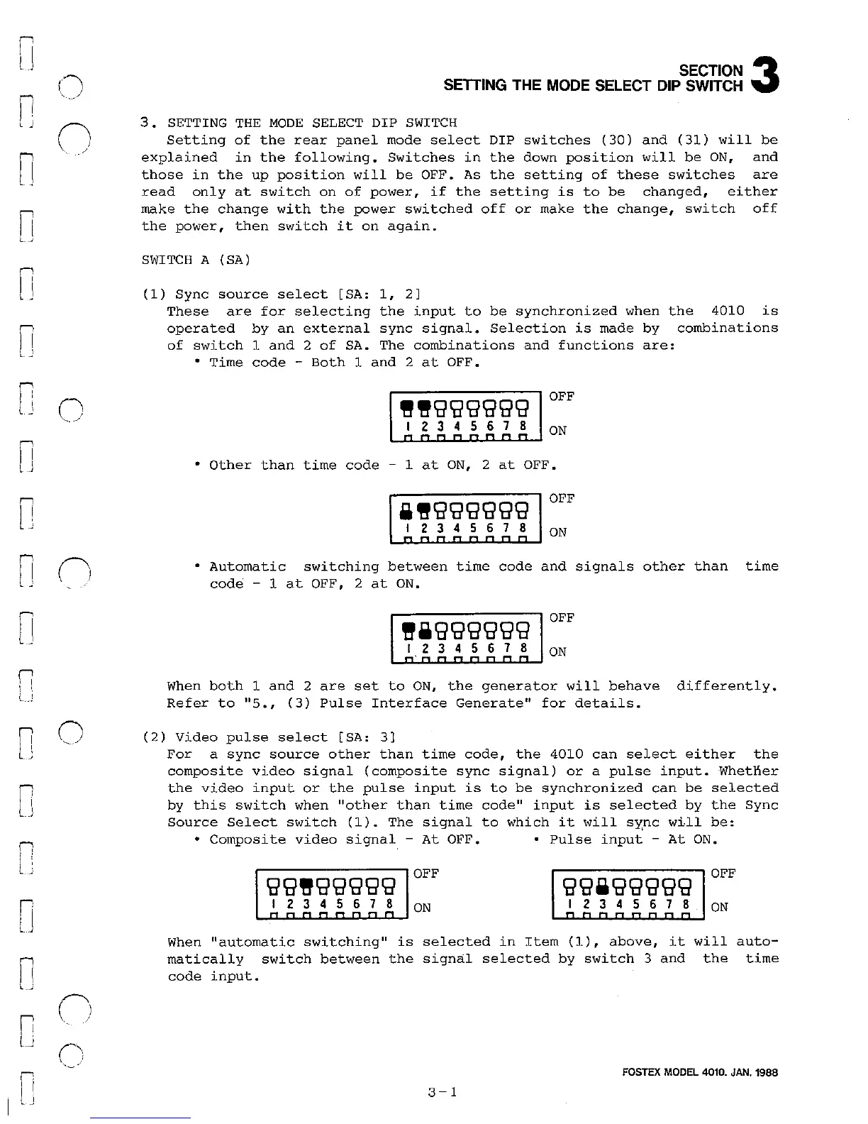 Fostex 4010 - Setting the Mode Select Dip Switch; Sync Source Select; Video Pulse Select