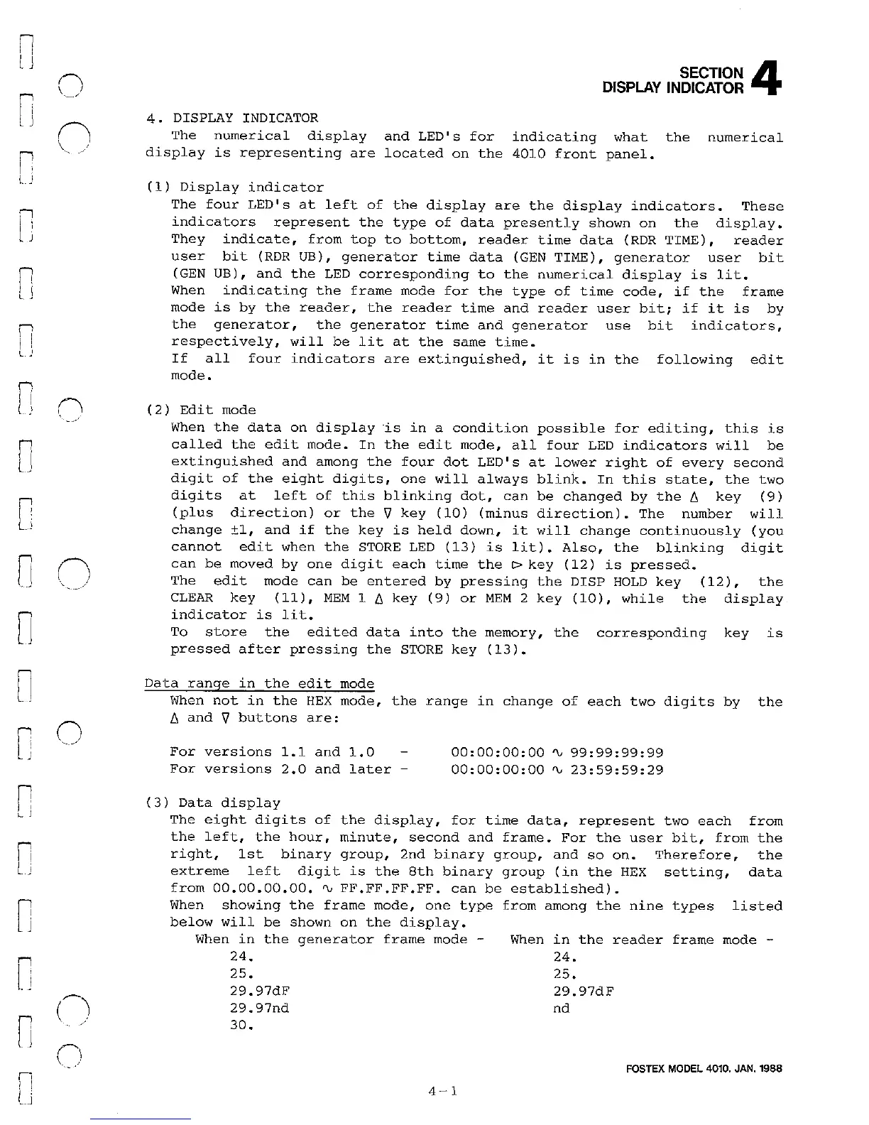 Fostex 4010 - Display Indicator; Edit Mode; Data Display