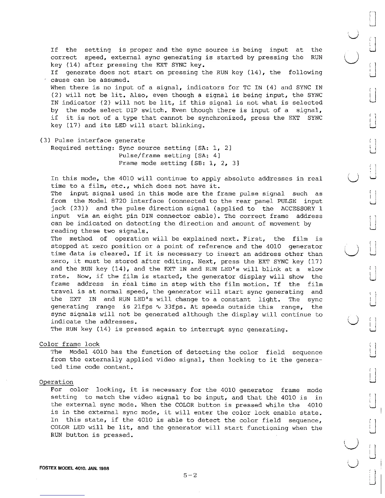 Fostex 4010 - Pulse Interface Generate; Color Frame Lock; Operation