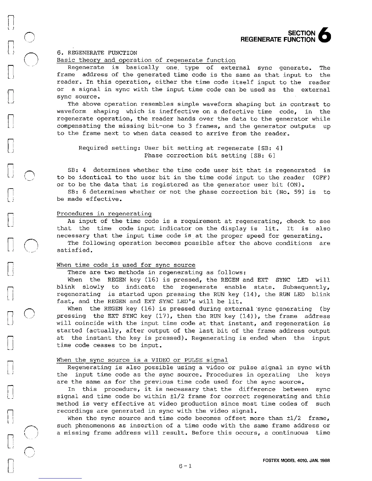 Fostex 4010 - Regenerate Function; When Time Code Is Used for Sync Source; When the Sync Source Is a Video or PULSE Signal